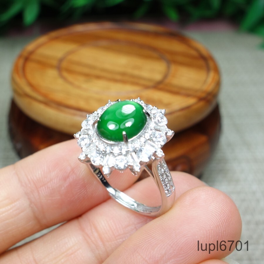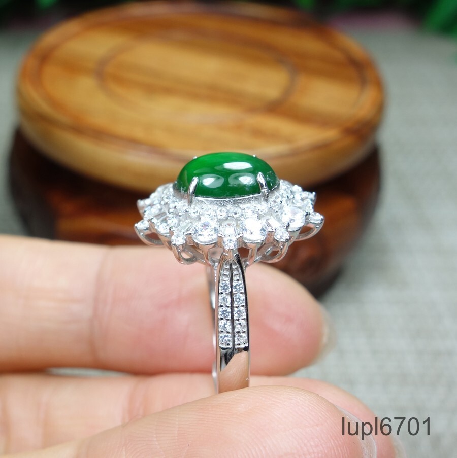 Certified Icy Green Burma 100 Natural A Jadeite Jade Ring s925 silver