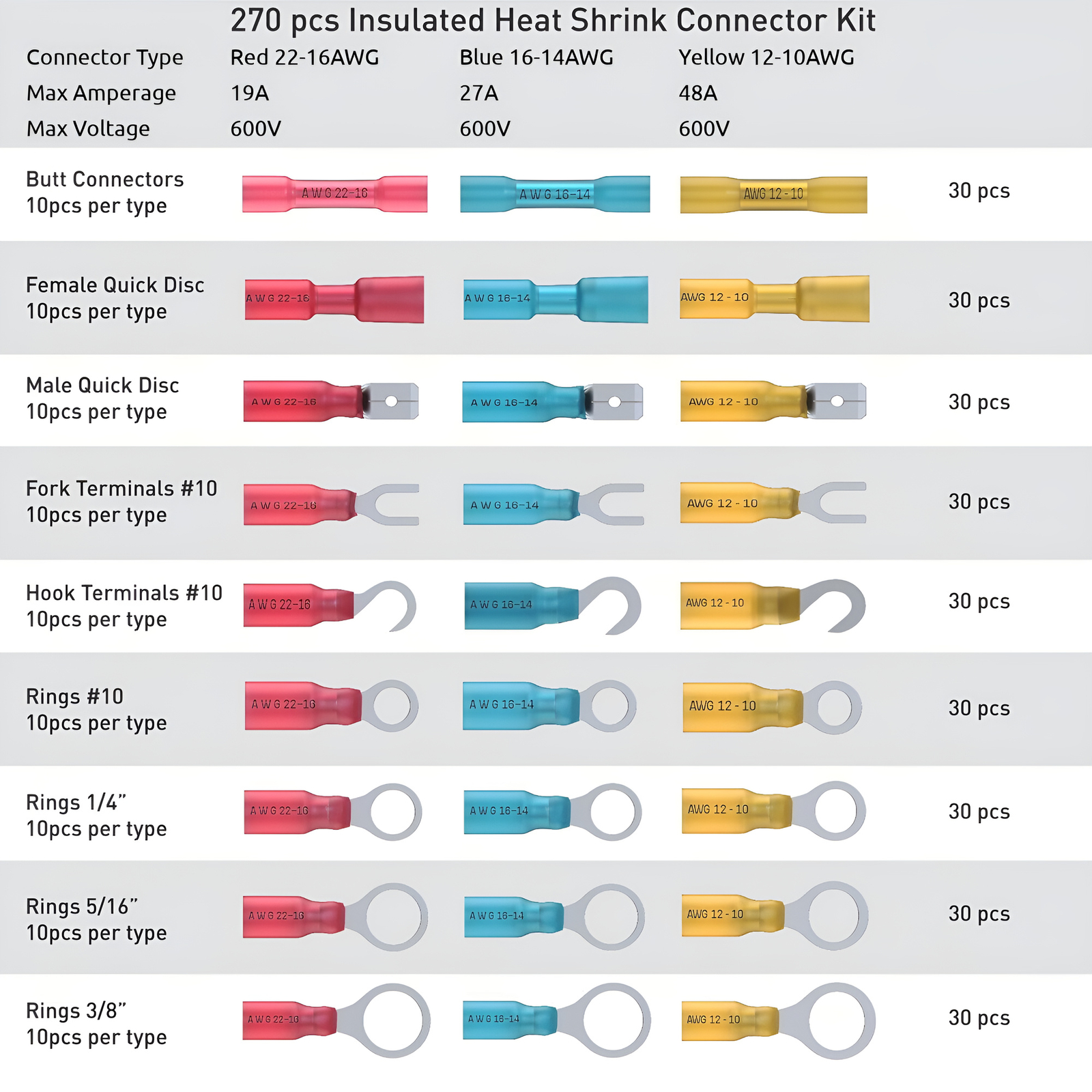 Gauge: 12-10 AWG/ 16-14 AWG/ 22-16AWG