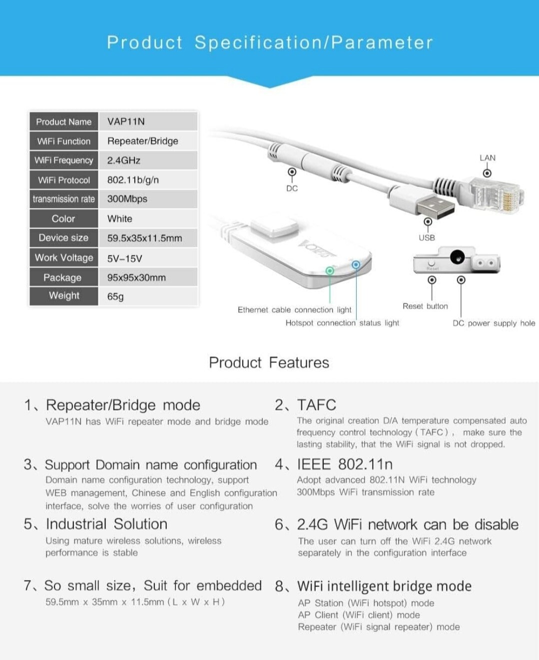 Vonets VAP11N-300 2.4GHz Mini WiFi Bridge Ethernet
