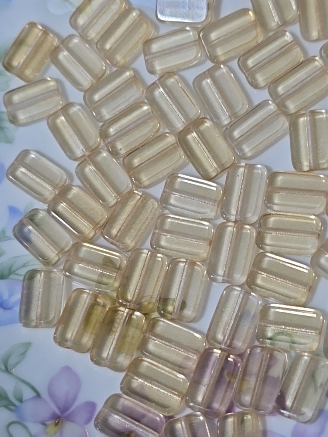 60 Total Pale Yellow Glass Loose Beads 1/2 Rectangle Shape Drilled