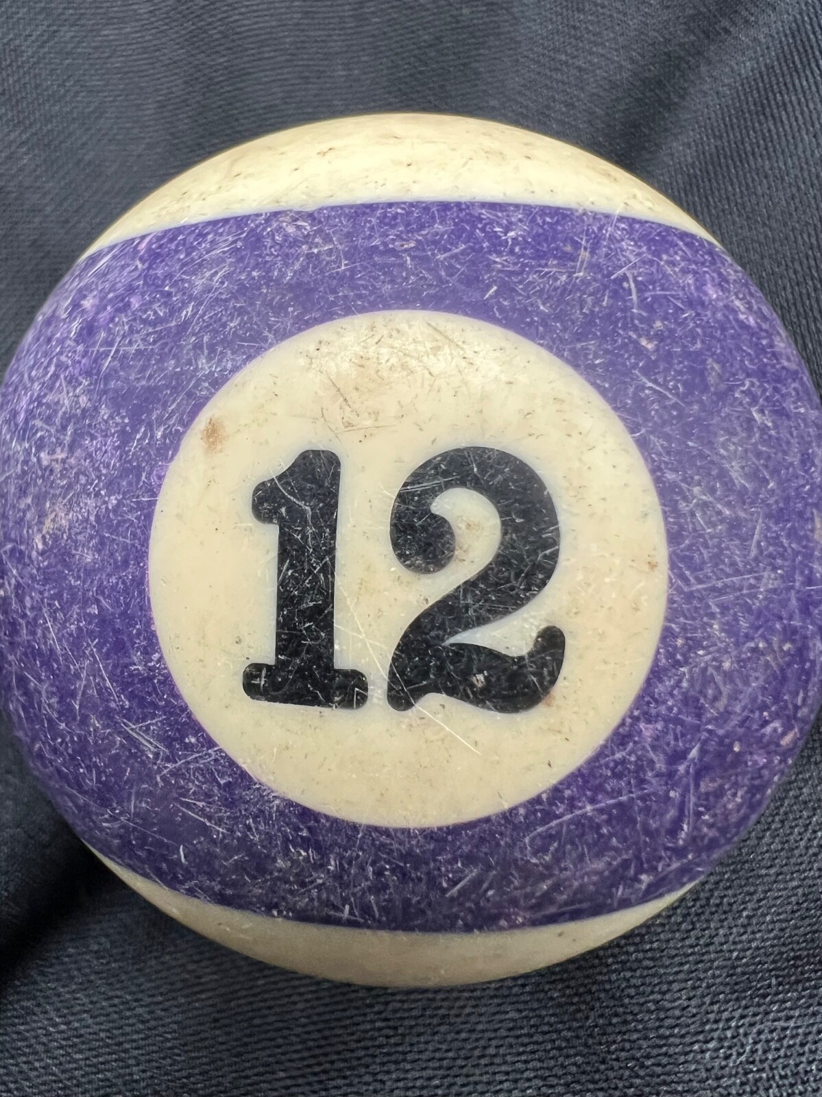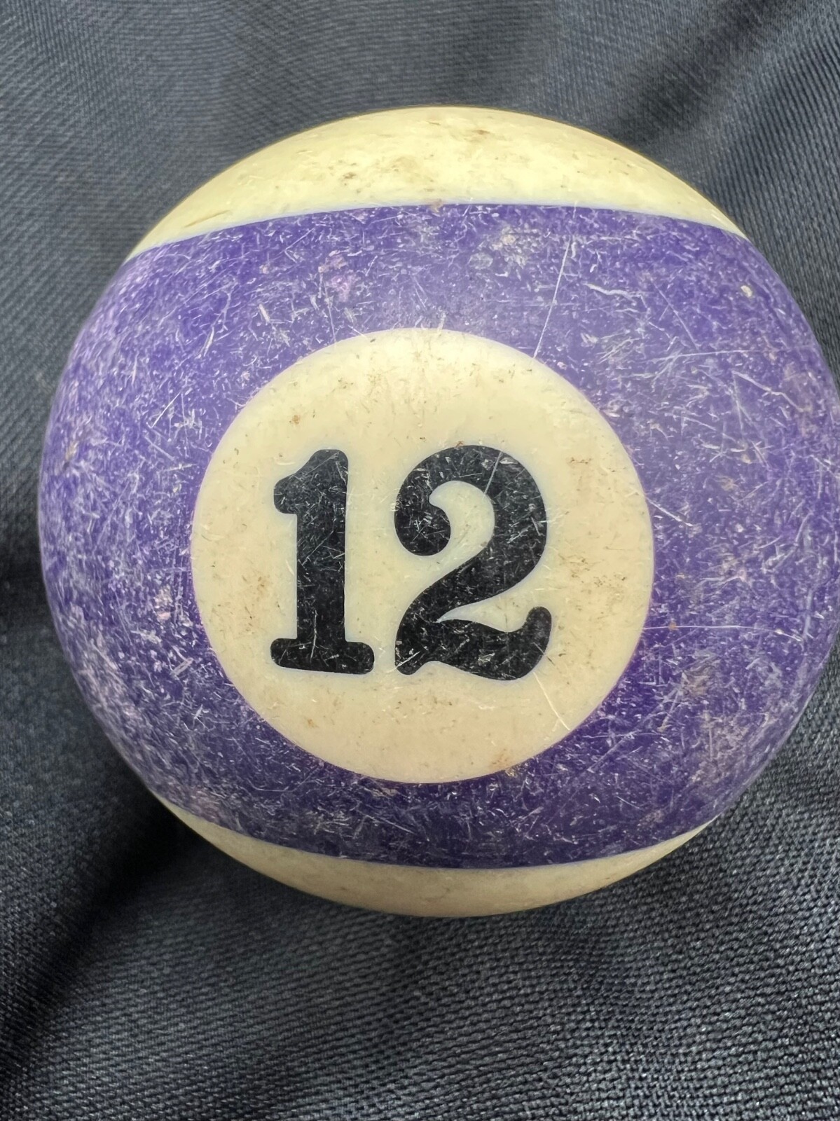 Vintage Pool Ball Number 12 Billards Pool Hall Bar Game 1980s Purple Stripe