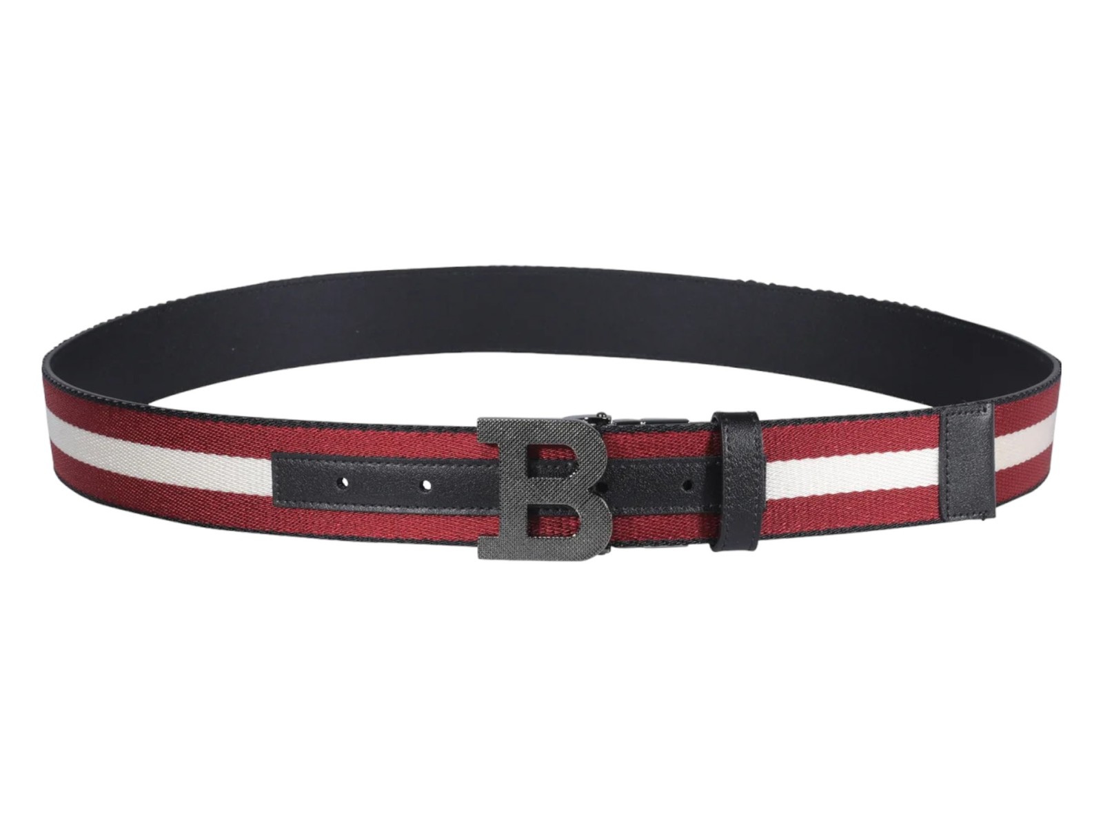 Bally 6235340 Men's Logo Buckle Webbing Stripe Reversible Belt EU 85/US 34
