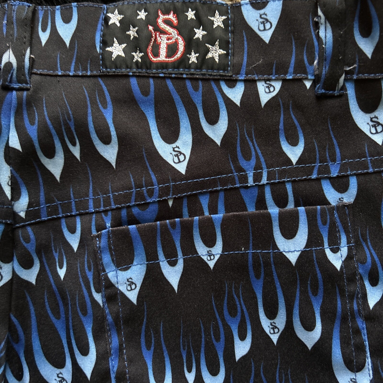 She Devil Blue Flames Flared Pants Hot Topic Vintage Late 80 s Size 5 NWOT