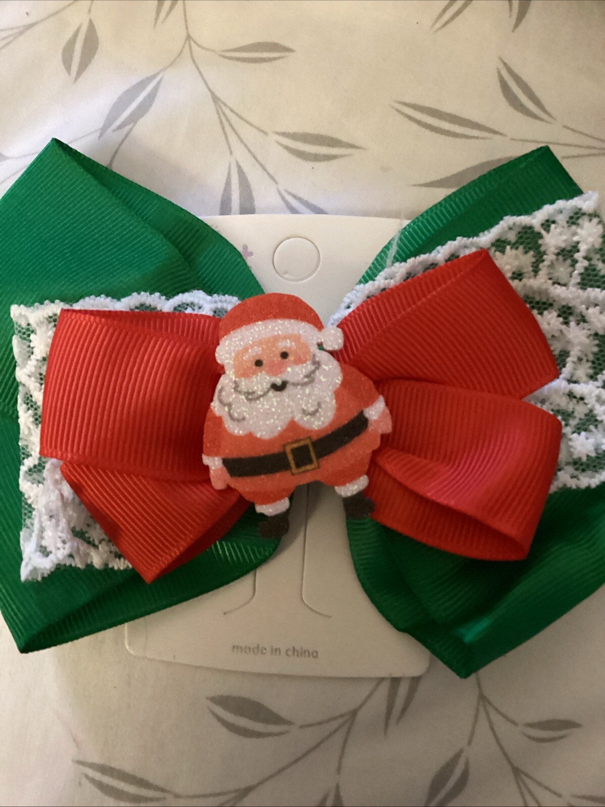 как выглядит Holiday Hair Bow With Santa Claus фото