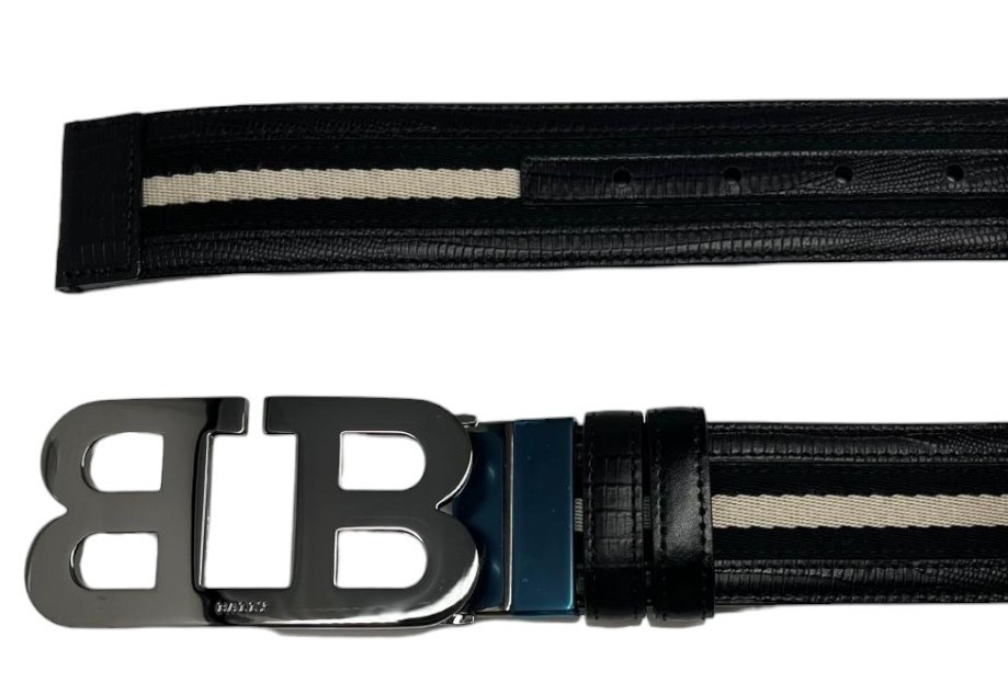 Bally 6303775 Mirror B Reversible Leather Striped/Black Belt EU 120/US 47