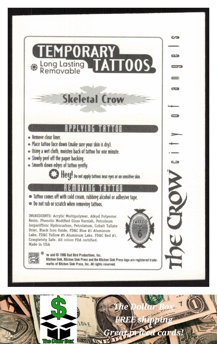 1996 Kitchen Sink Press The Crow: City of Angels Tattoos 6 Skeletal Crow -