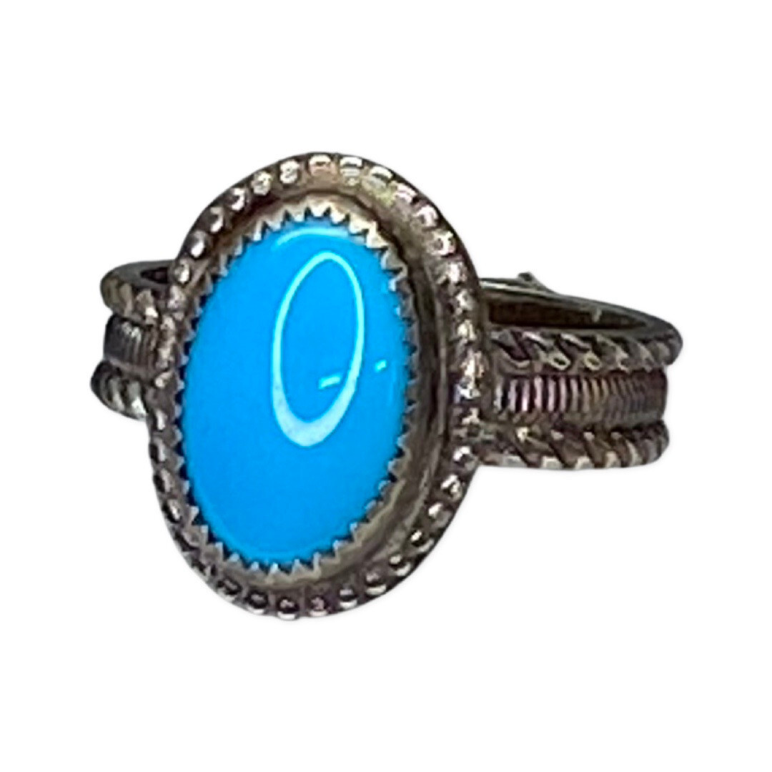 Handmade Intricate Band Turquoise Silver Ring Size 10