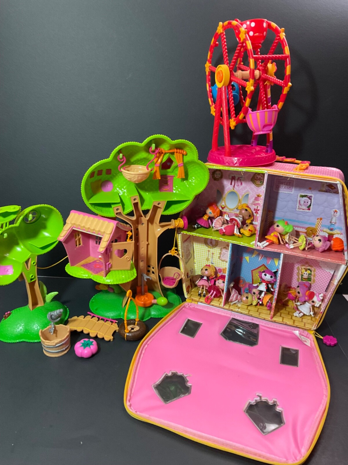 Mini LaLaLoopsy Doll Carrying Case With 16 Dolls Tree House Ferris Wheel Lot