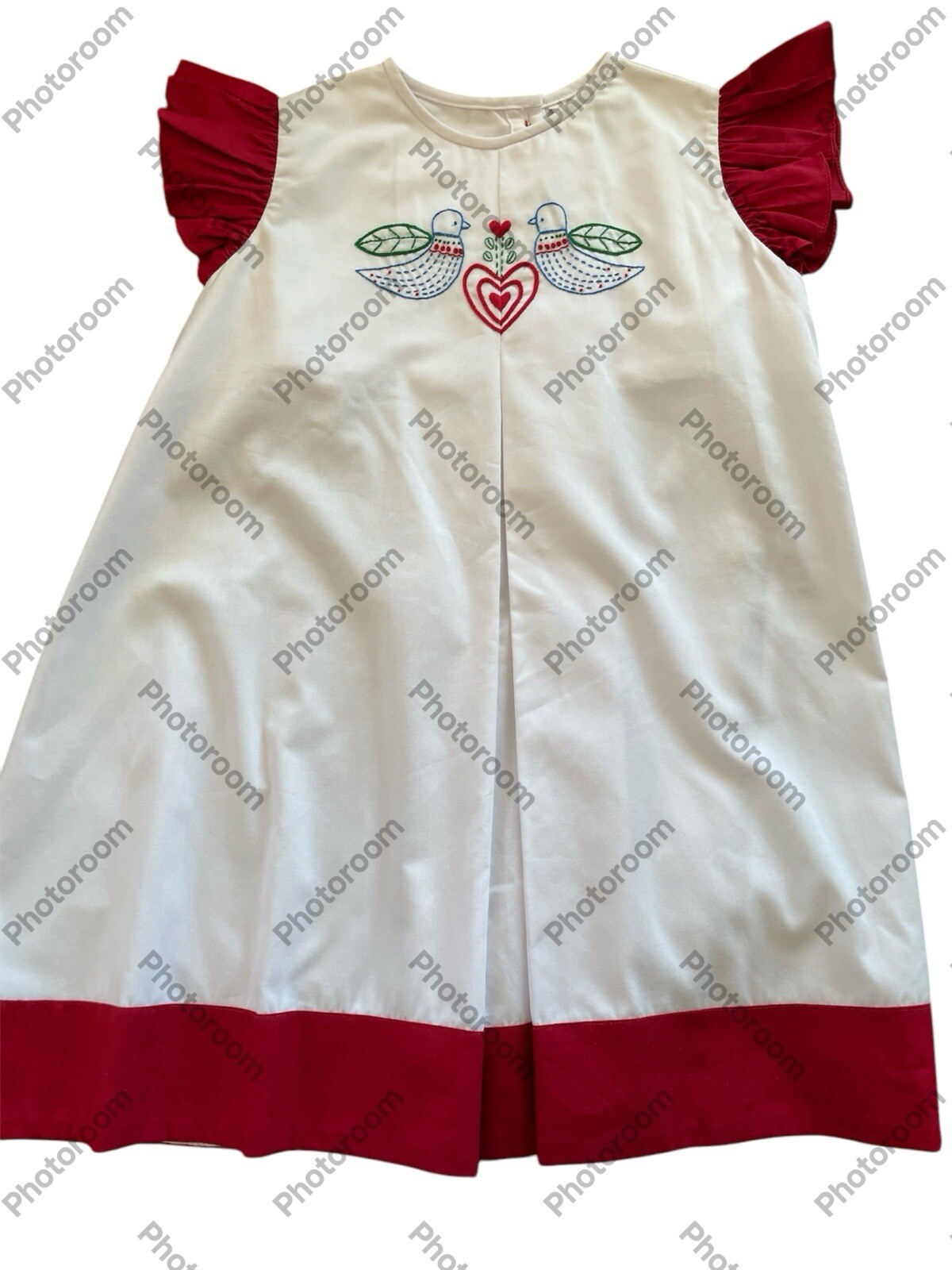 Proper Peony NWT White/Red Embroidered Love Birds Sh Sl Dress-5T
