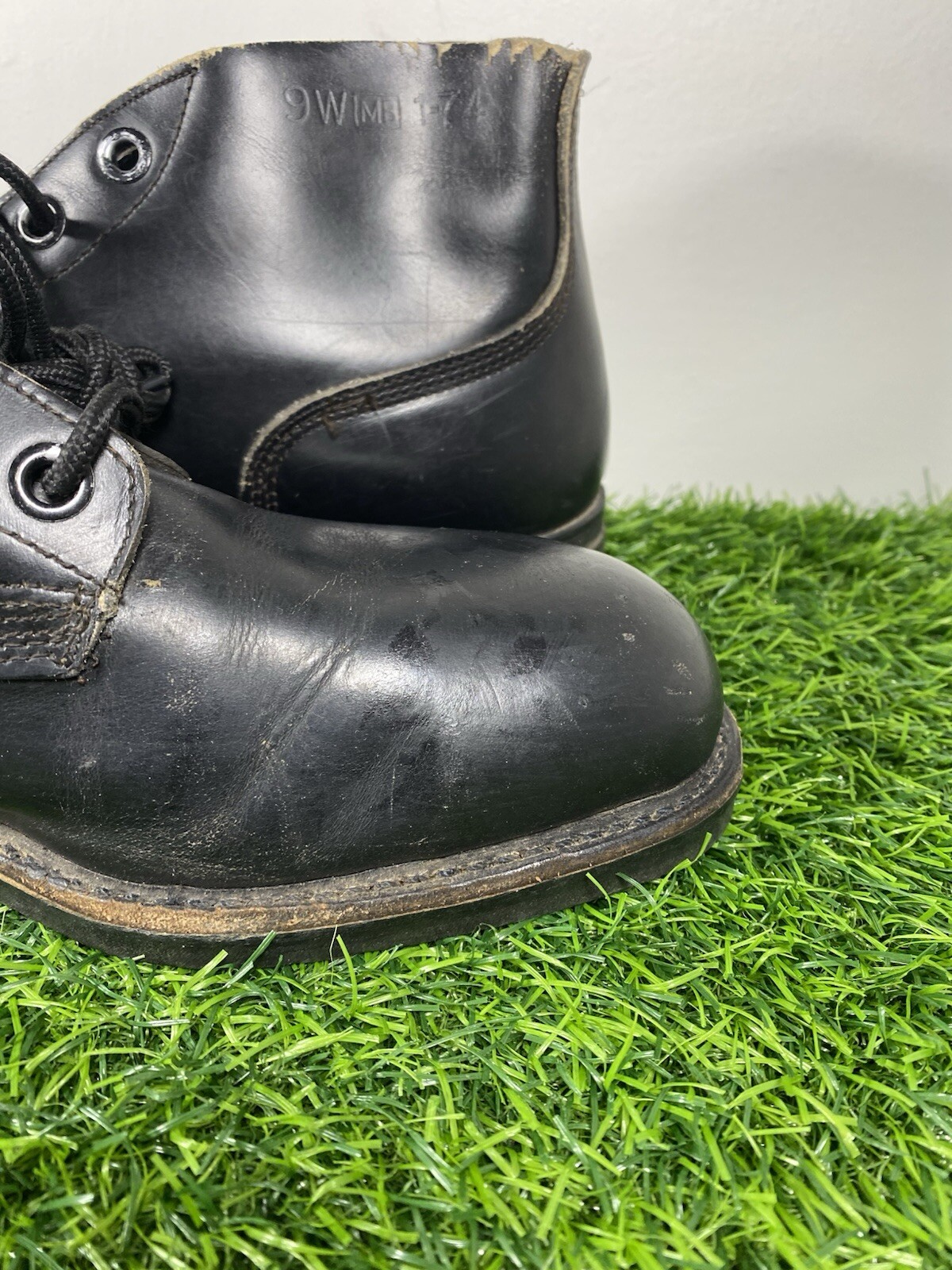 как выглядит Vintage 70s 1974 Mens Size 9W Steel Toe Leather Ankle Military Boots Black фото
