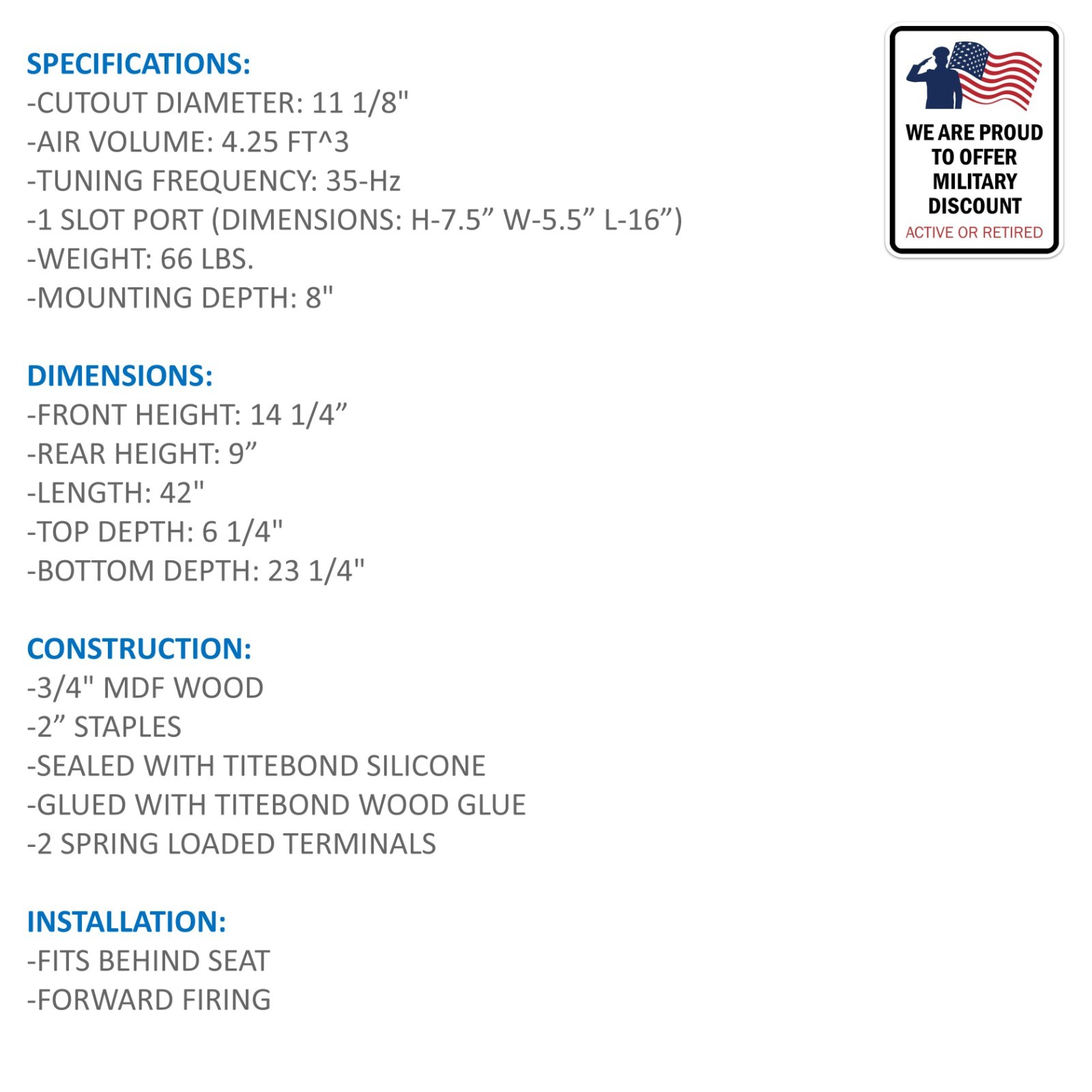 Chevy El Camino 1978-1987 Dual Ported Sub Box Subwoofer Enclosure Ground Shaker