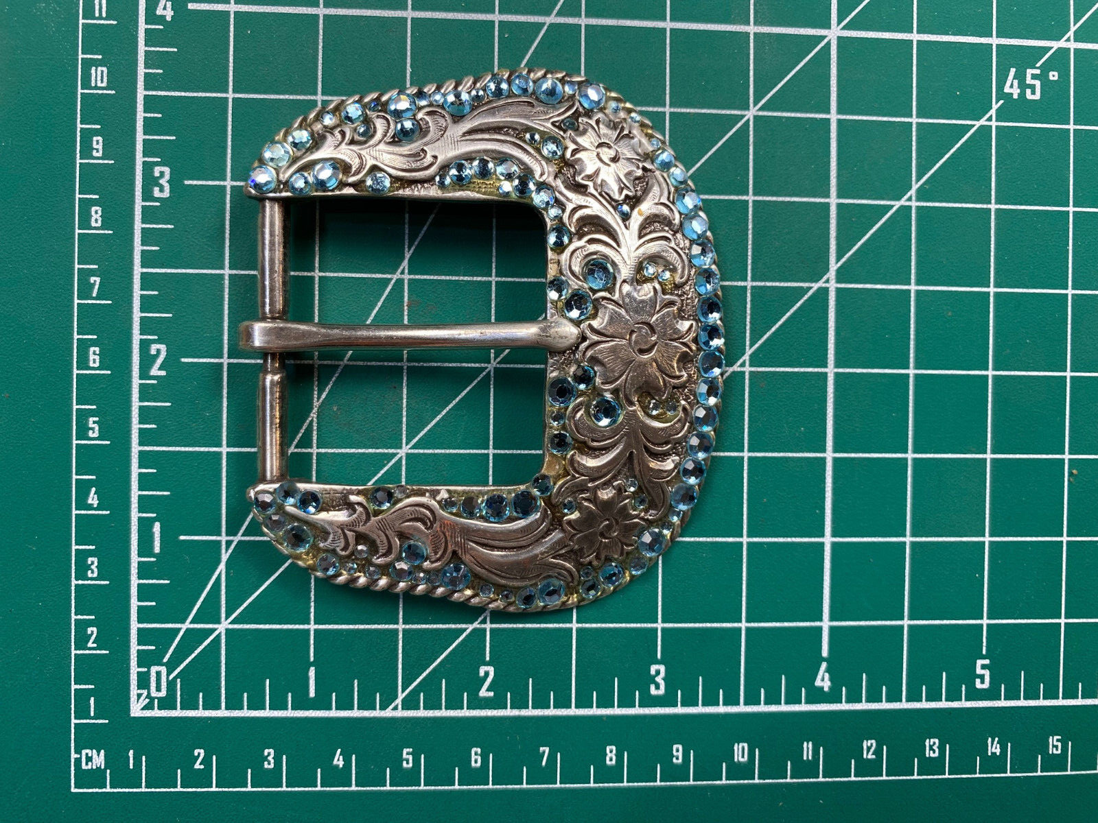 как выглядит Light Blue Rhinestone Pin Style Belt Buckle 1996 фото