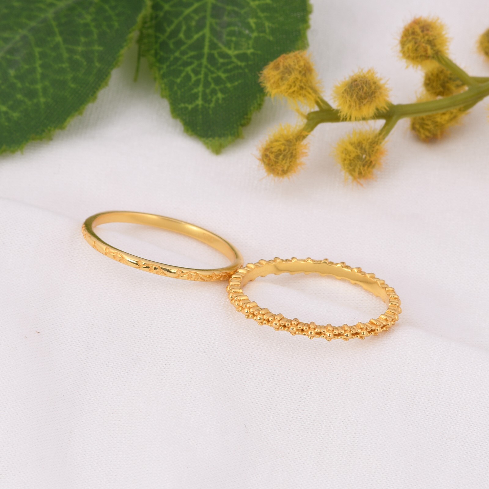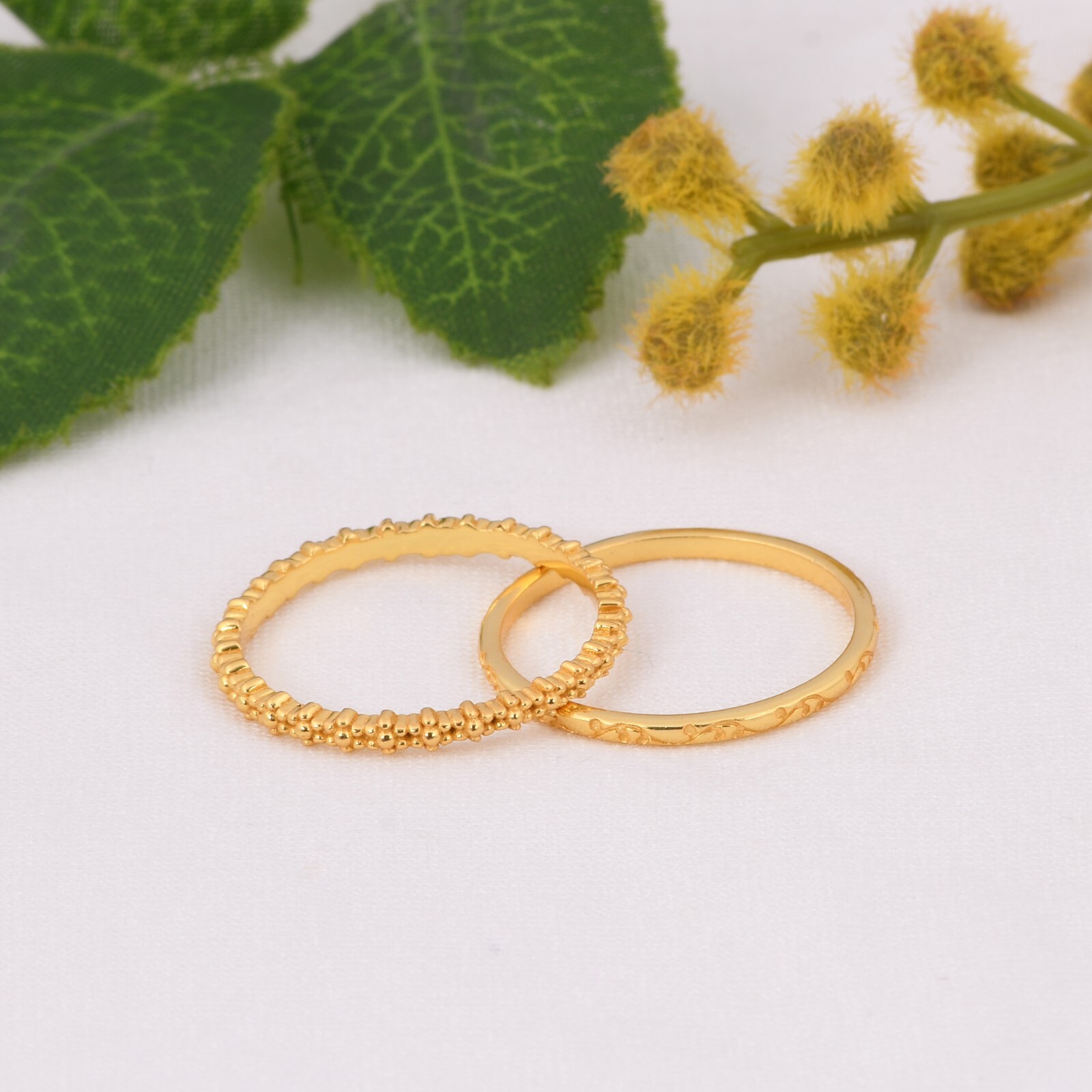 как выглядит Stacking Ring Set - Set of 2 Gold Stackable Rings - Gift for Her - Double Band фото