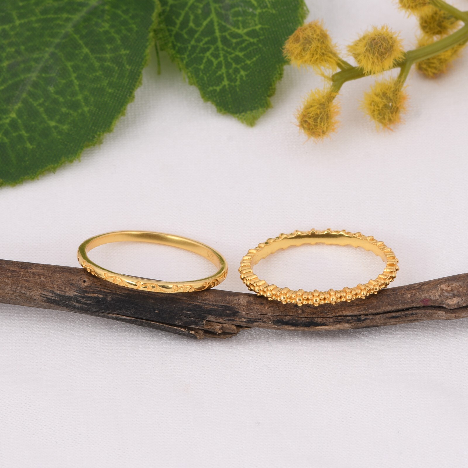 Stacking Ring Set - Set of 2 Gold Stackable Rings - Gift for Her - Double Band