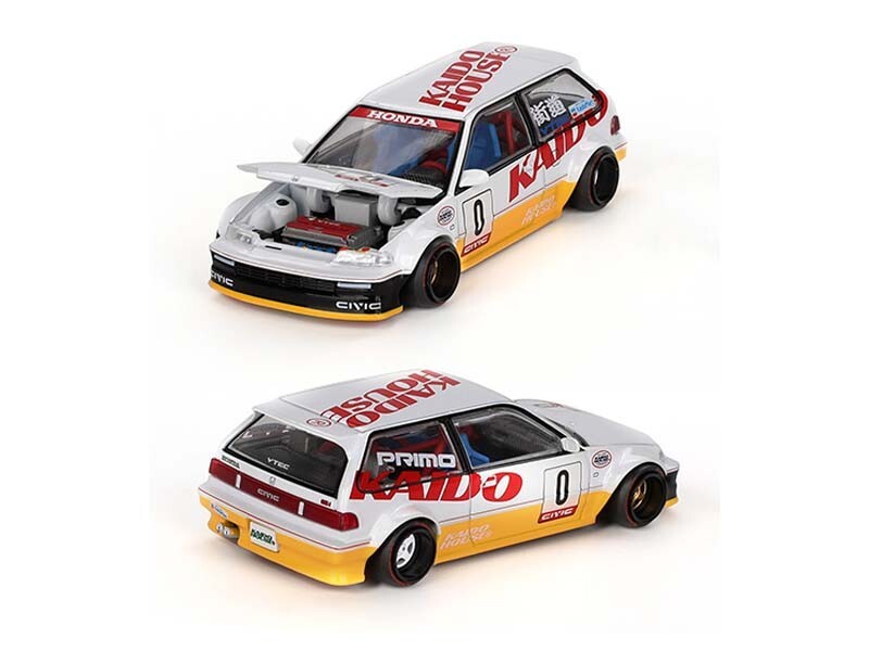 как выглядит Honda Civic EF Kanjo V1 White/Yellow Diecast 1:64 Scale Model - TSM KHMG139 фото