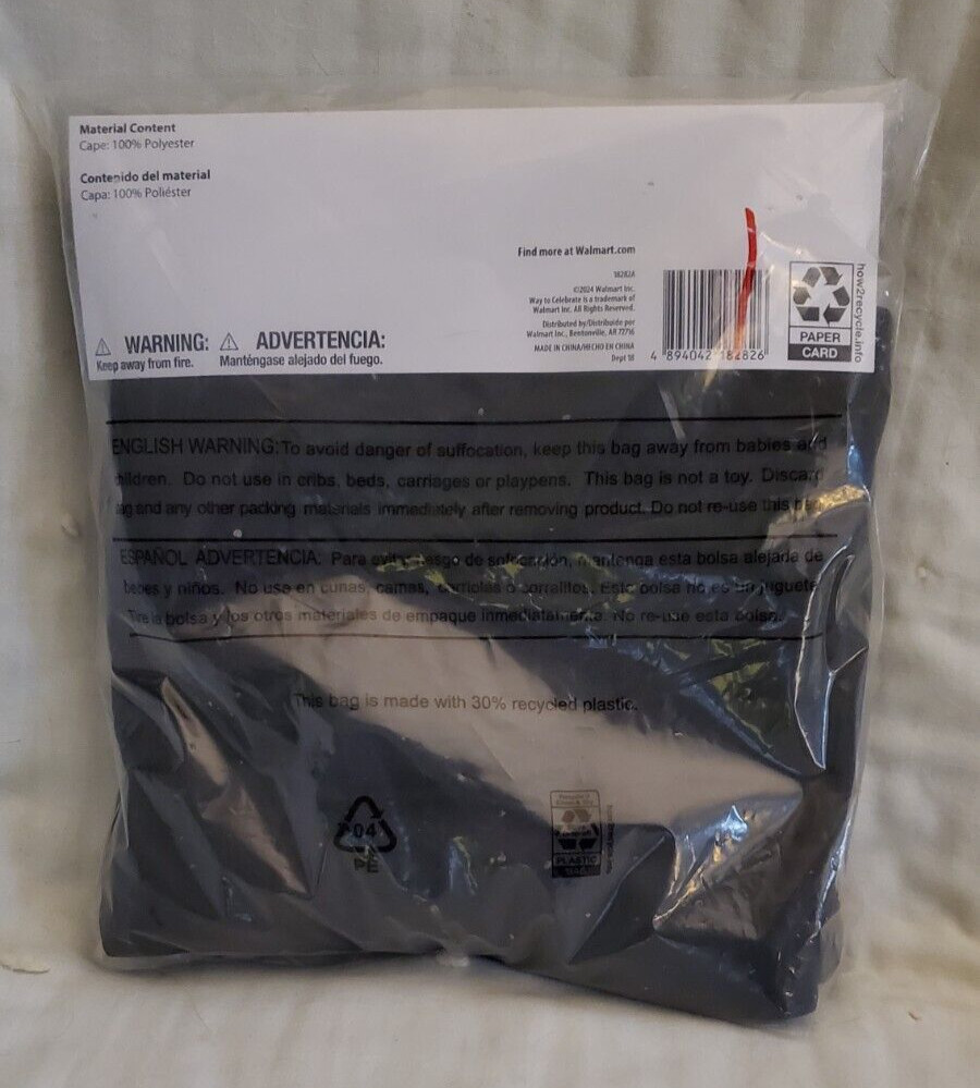 Halloween Black Vampire Cape Wal-Mart New One Size Black 48x25