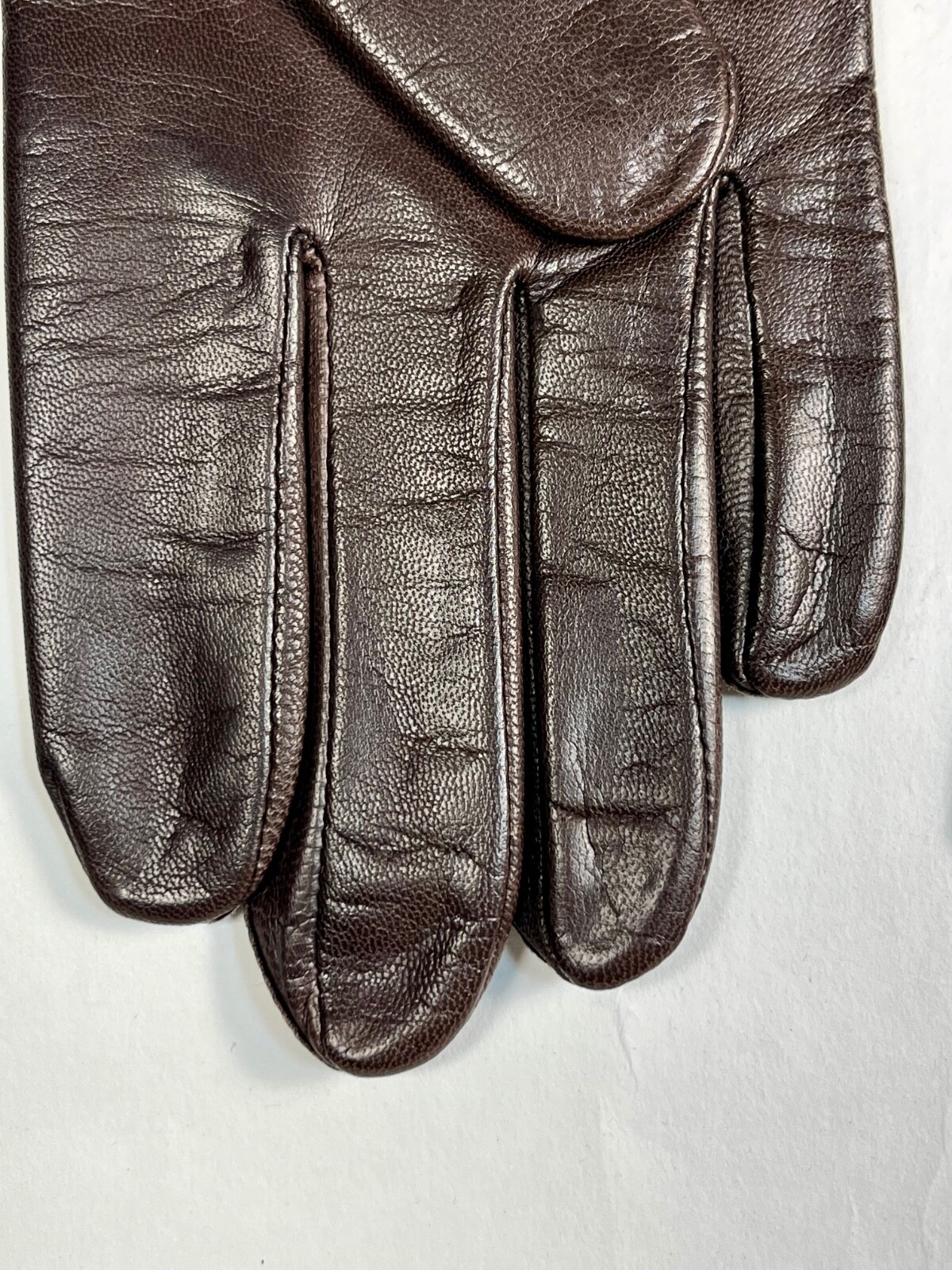 как выглядит Vintage 1980s to 1990s dark brown leather FOWNES gloves w/knit lining size 7.5 фото