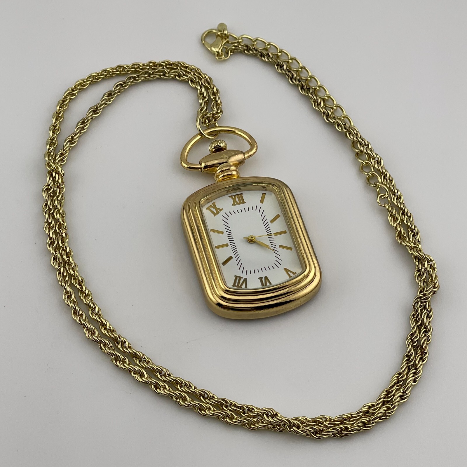 Roman Numerals Pocket Watch 30mm Case Pendant Chain Quartz Three Hands