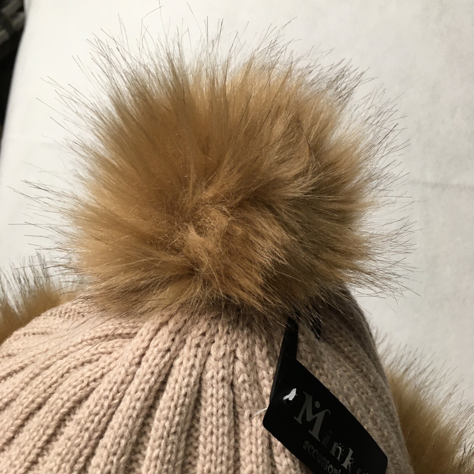 как выглядит beige Knit Hat Faux Fur Trim Fluffy Winter Pom Pom Warm Cute фото