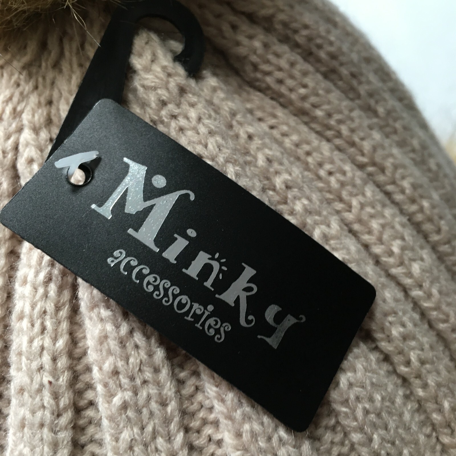 beige Knit Hat Faux Fur Trim Fluffy Winter Pom Pom Warm Cute