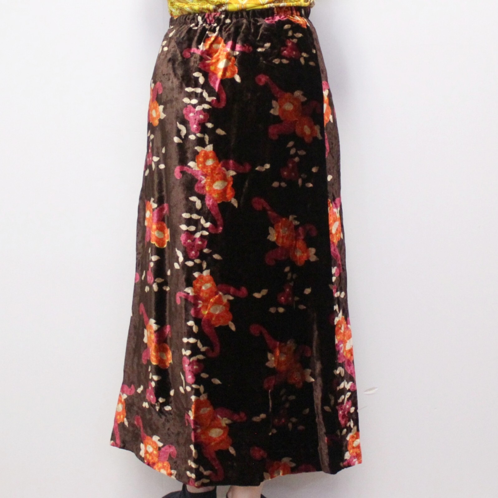 Vintage 70s Velvet Floral Maxi Skirt Long High Waisted Column Fit Skirt
