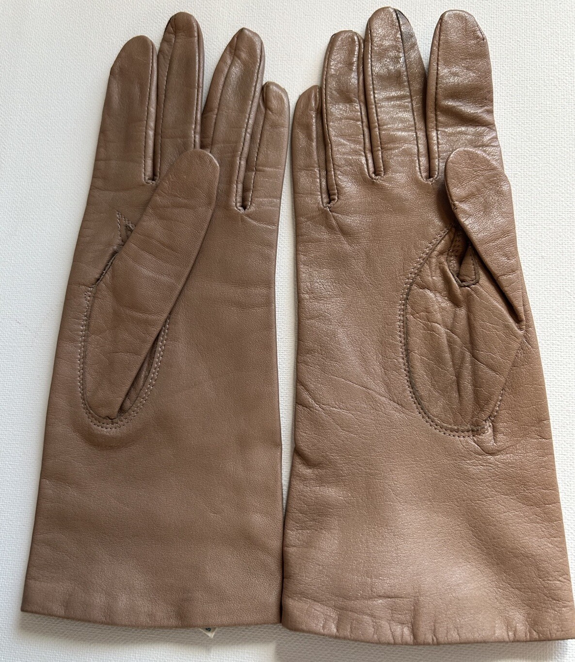 как выглядит Vintage womens Tan Soft Leather Driving Dress Lined Gloves made in Japan Small фото