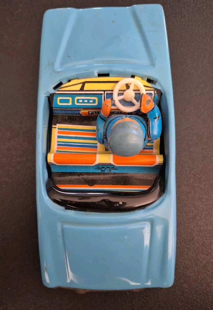 1970's Vintage China MF-171 Blue Convertible Car Friction Tin Toy.