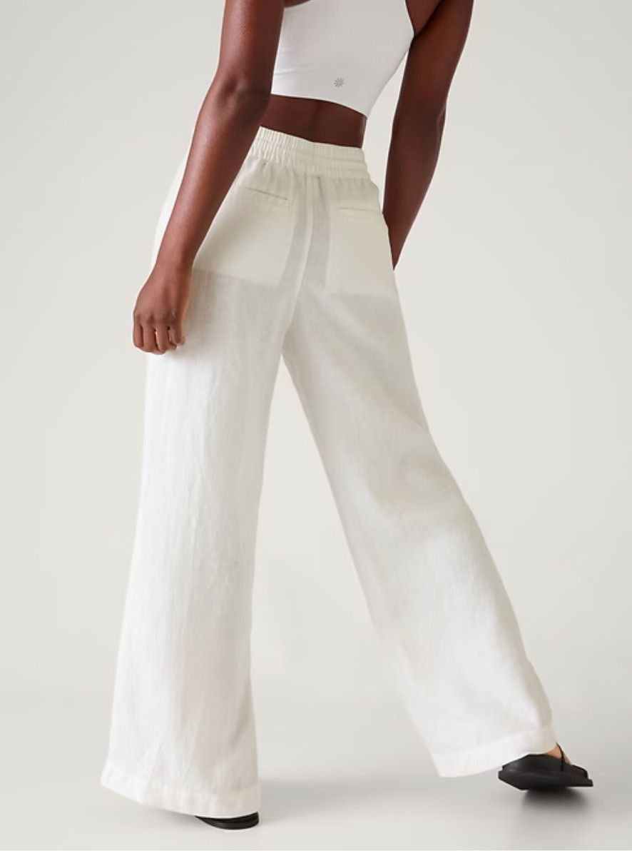 Athleta Retreat Linen Mid Rise Wide Leg Pant EUC, Small, Calla Lily