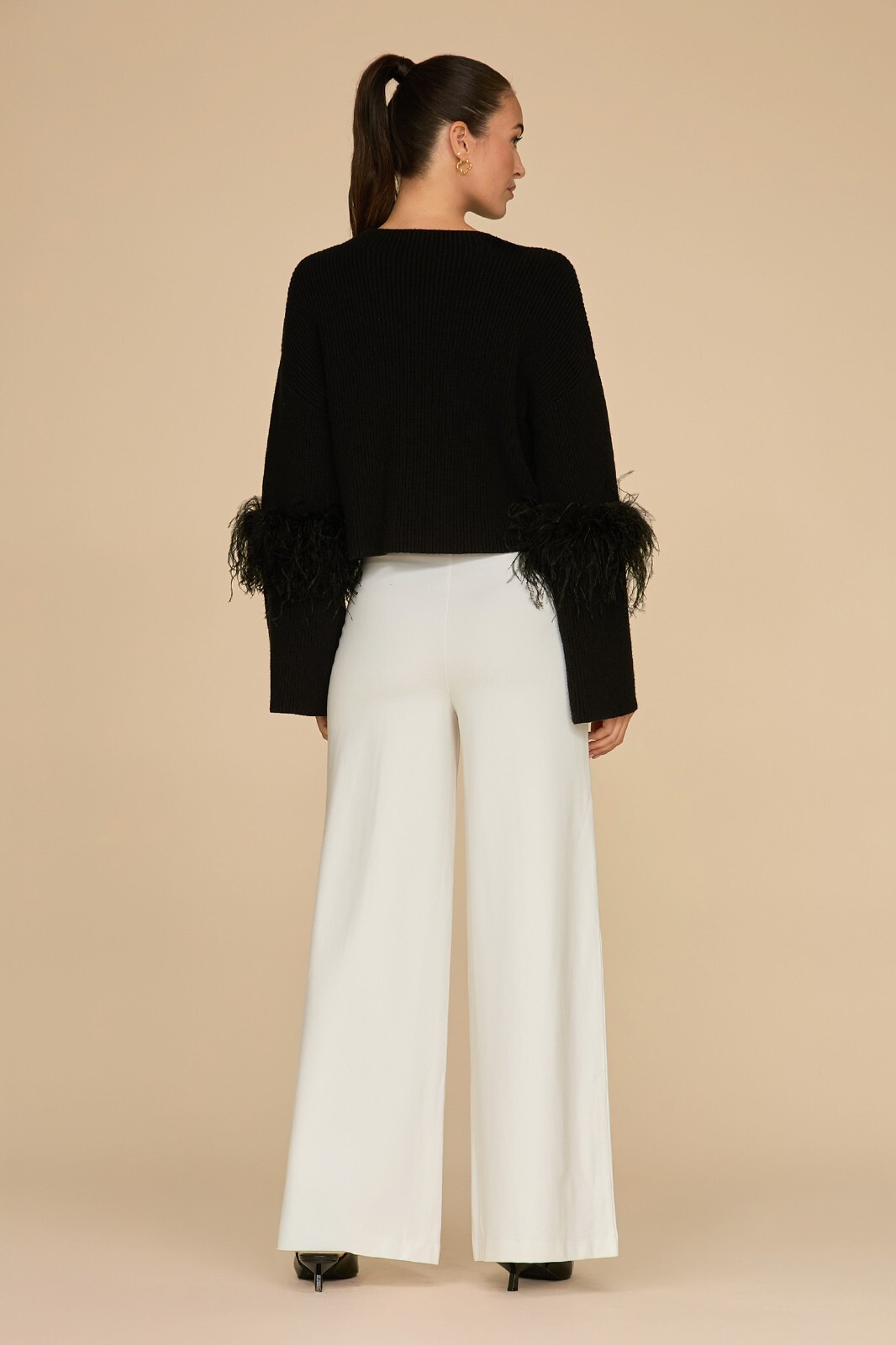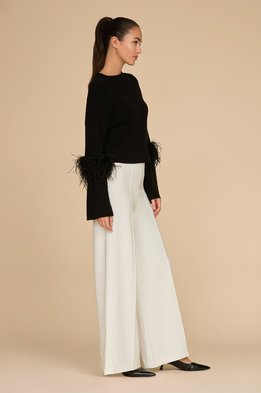 как выглядит Ava Ultra-Sculpting Ponte Wide Leg Pant Black and Pearl THE NOLI SHOP фото