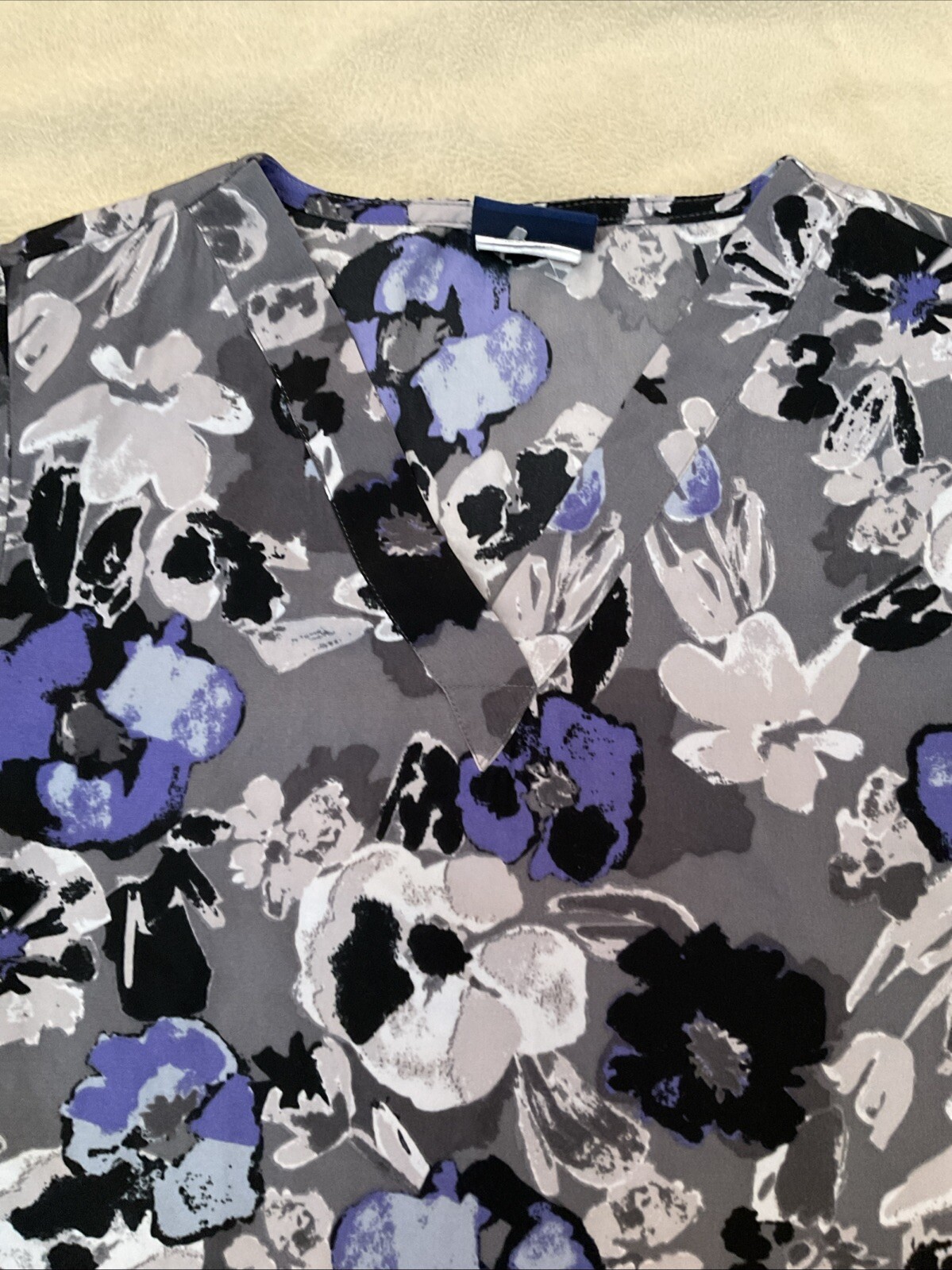 как выглядит Taffor Floral Polyester Scrub Top Purple Black Grey Womens Small фото