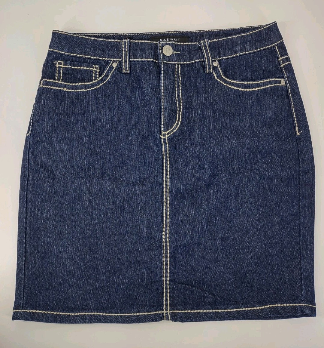 Nine West Jeans Pencil Jean Skirt Size 8/28 Average Embellished Bling Pockets