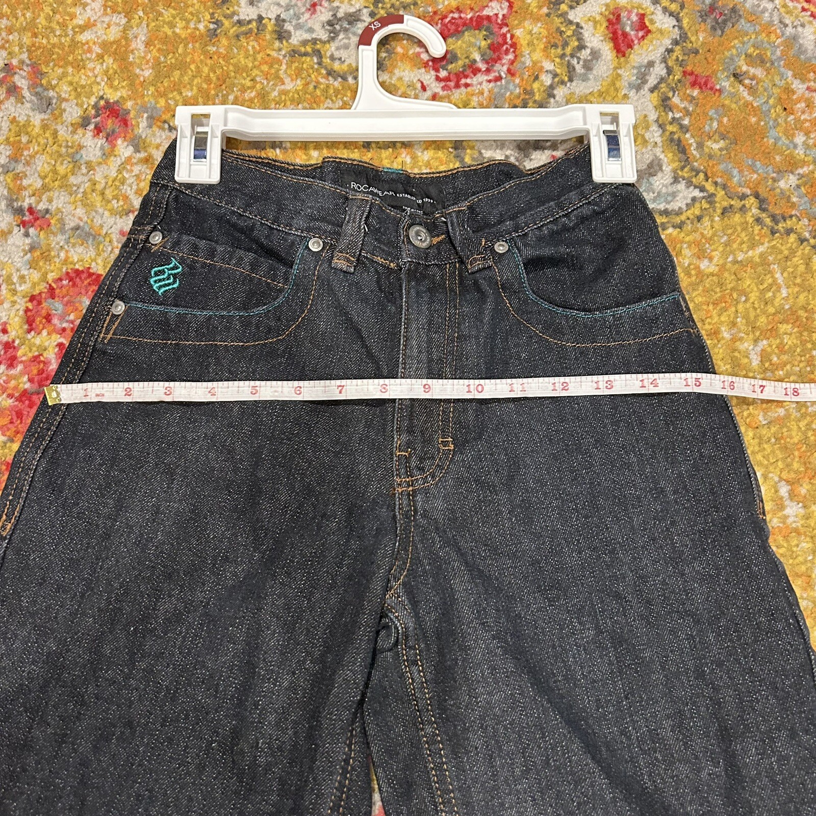 как выглядит Boys Blue Denim Rocawear Graphic Print Original Fit Shorts Size 10 Y2K VTG фото