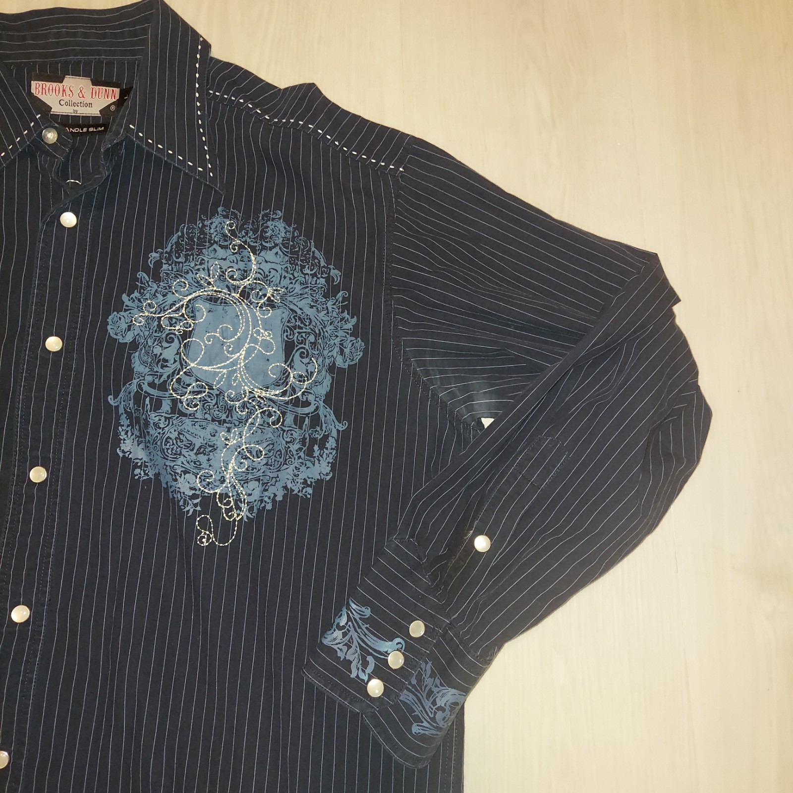 как выглядит Brooks Dunn Collection Panhandle Slim Shirt Mens L Western Pearl Snap Black фото