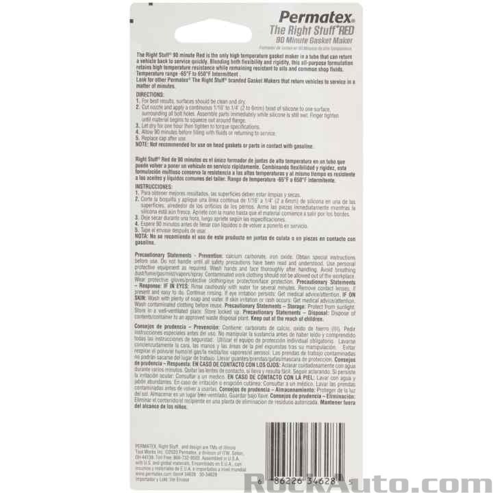 Permatex 34628 Right Stuff 90 Minute Red High Temperature Gasket Maker, 3 Oz.