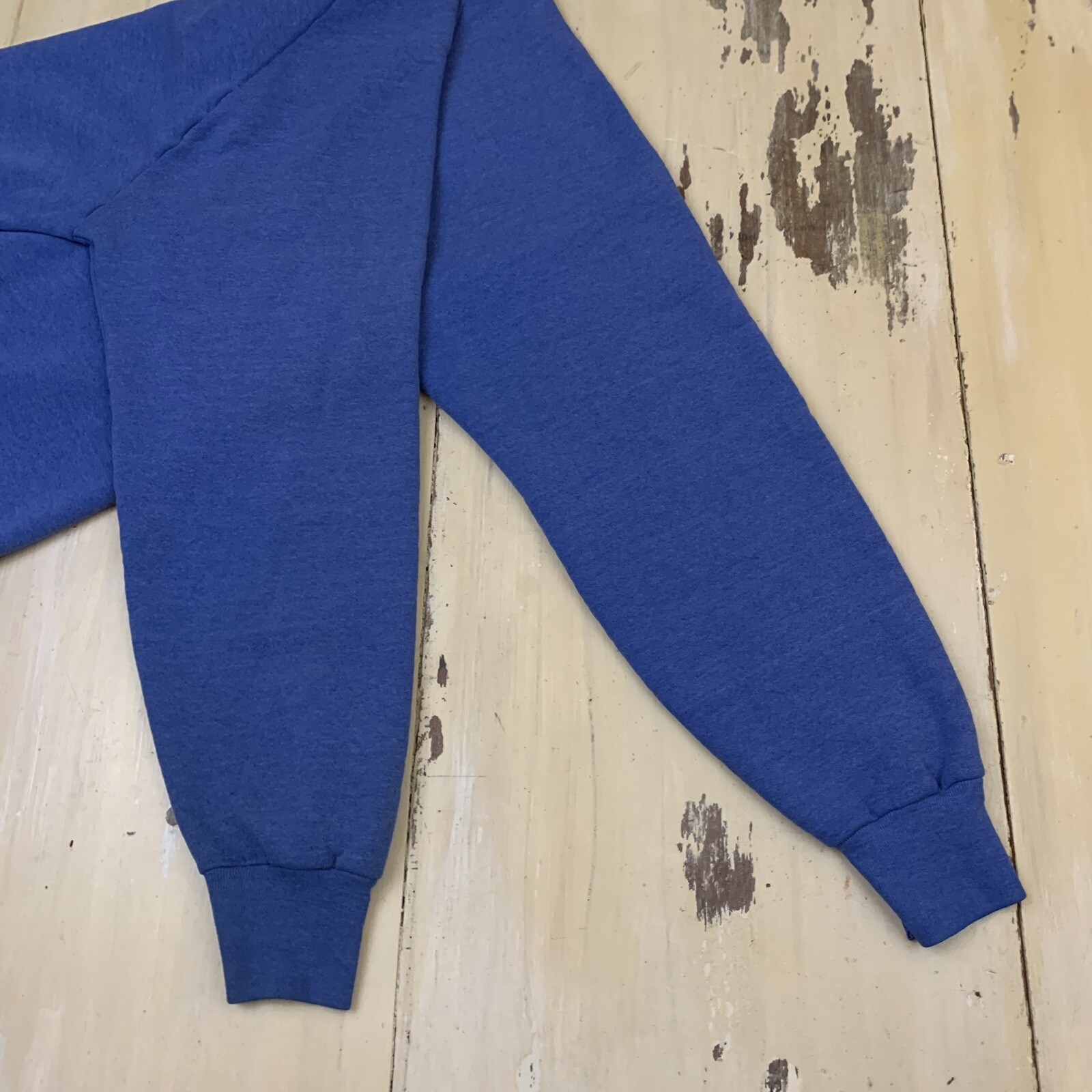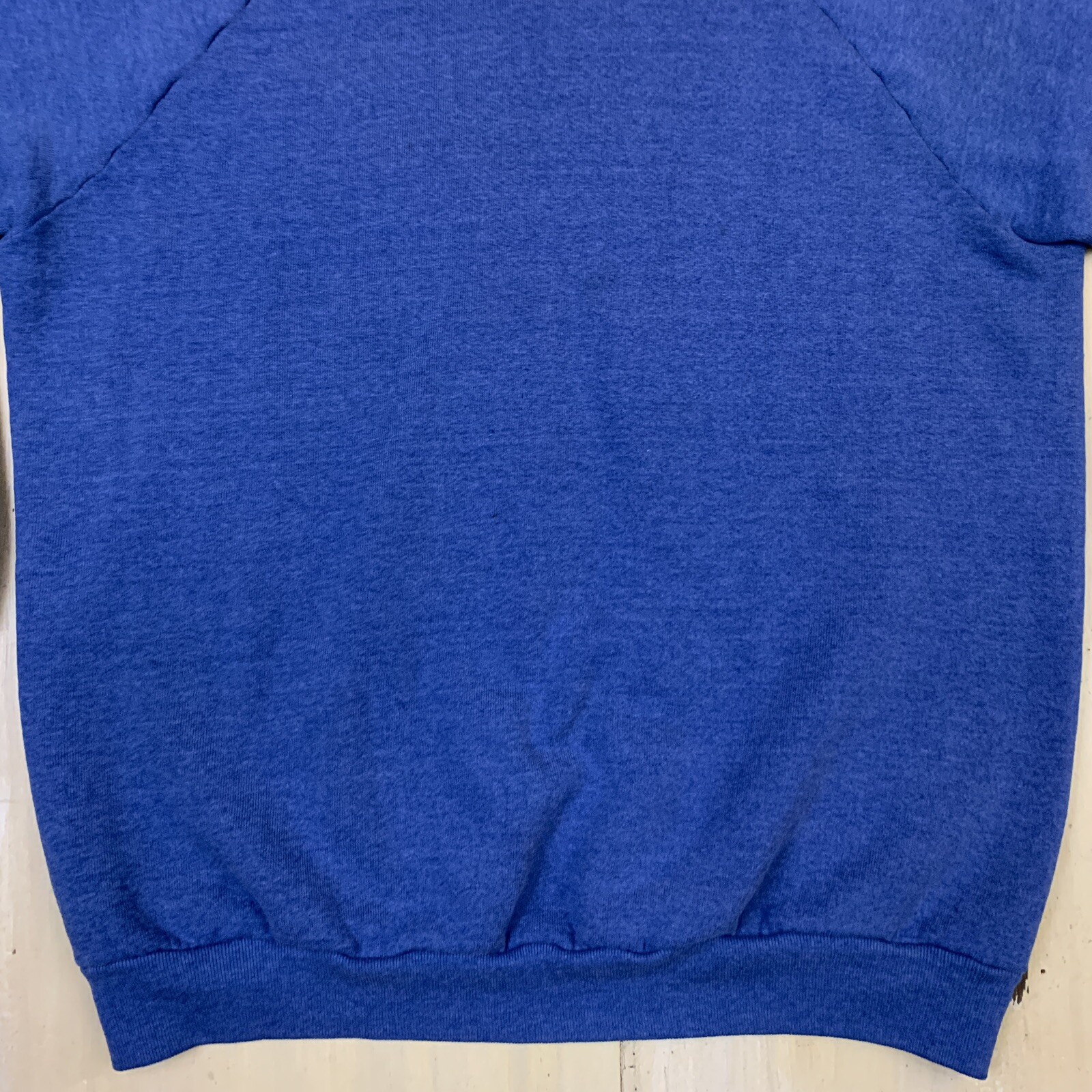 FRUIT OF THE LOOM - Vtg 80s Blue Plain Blank Raglan Sweatshirt, Mens MED/LARGE
