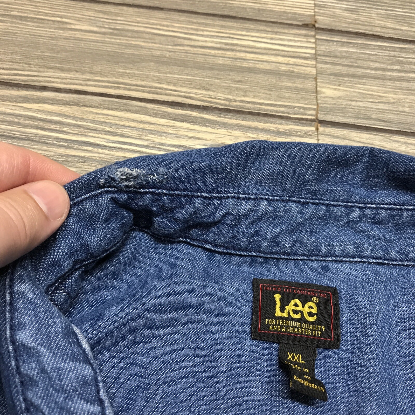 как выглядит VINTAGE Lee Mens Denim Jean Shirt Blue Button Up Long Sleeve Size 2XL фото