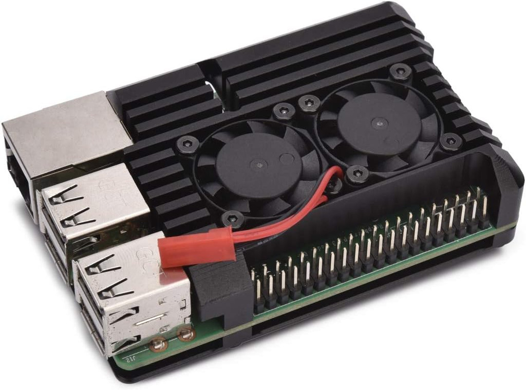 Raspberry Pi 3 Model B Aluminum Case with Dual Cooling Fan Metal Shell Black En