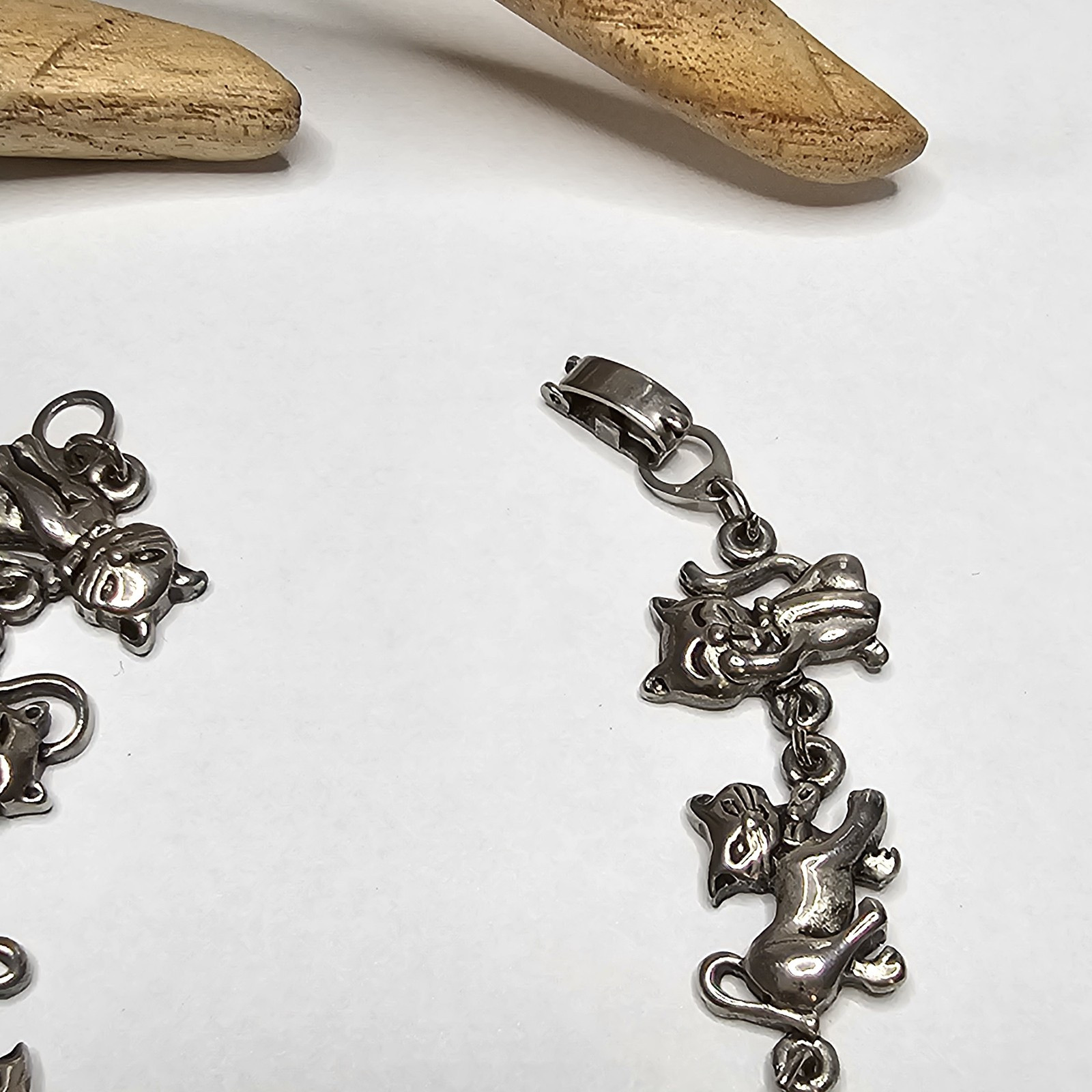 как выглядит Adorable Whimsical Silver Tone Cat Bracelet Cats Kittens Cute Bracelet Size 7.25 фото