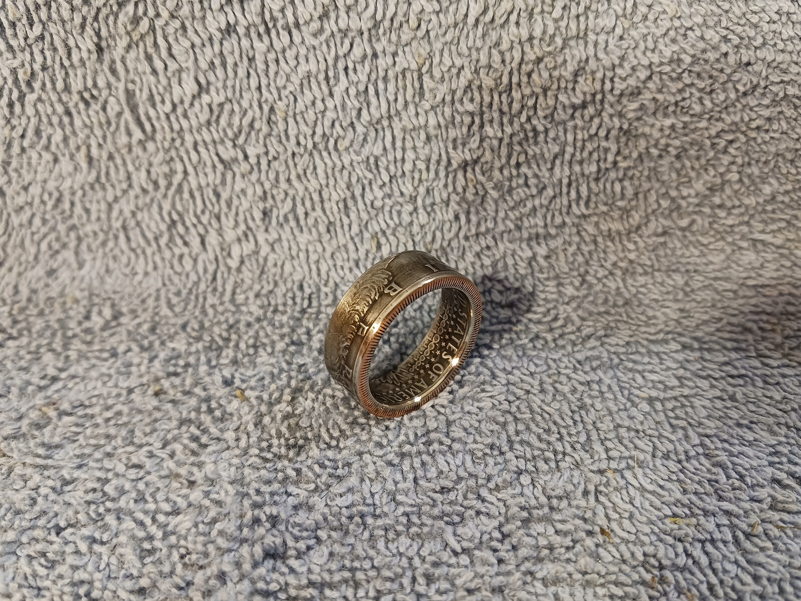 1972 Kennedy Half Dollars size 10 -1/2 coin ring handmade mixed metals B