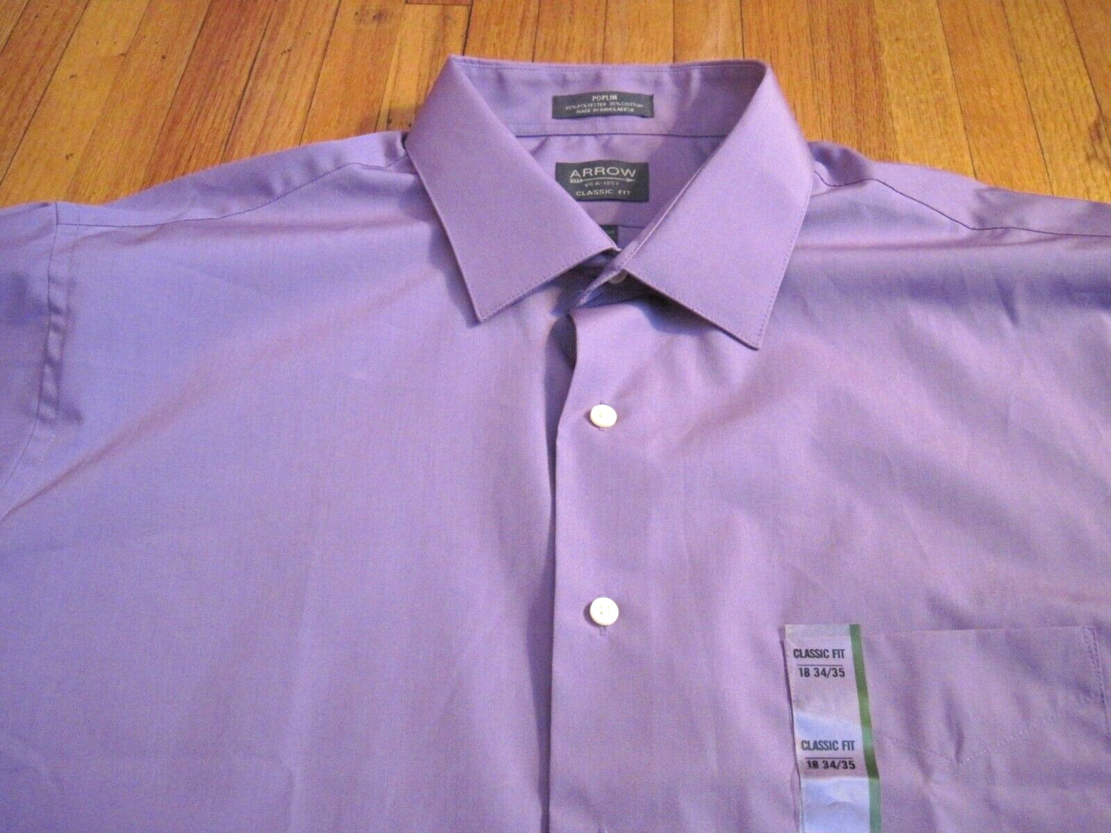 как выглядит Arrow Classic Fit Wrinkle Free Purple Tulip Poplin Dress Shirt 2XL-18-34/35 NWT фото