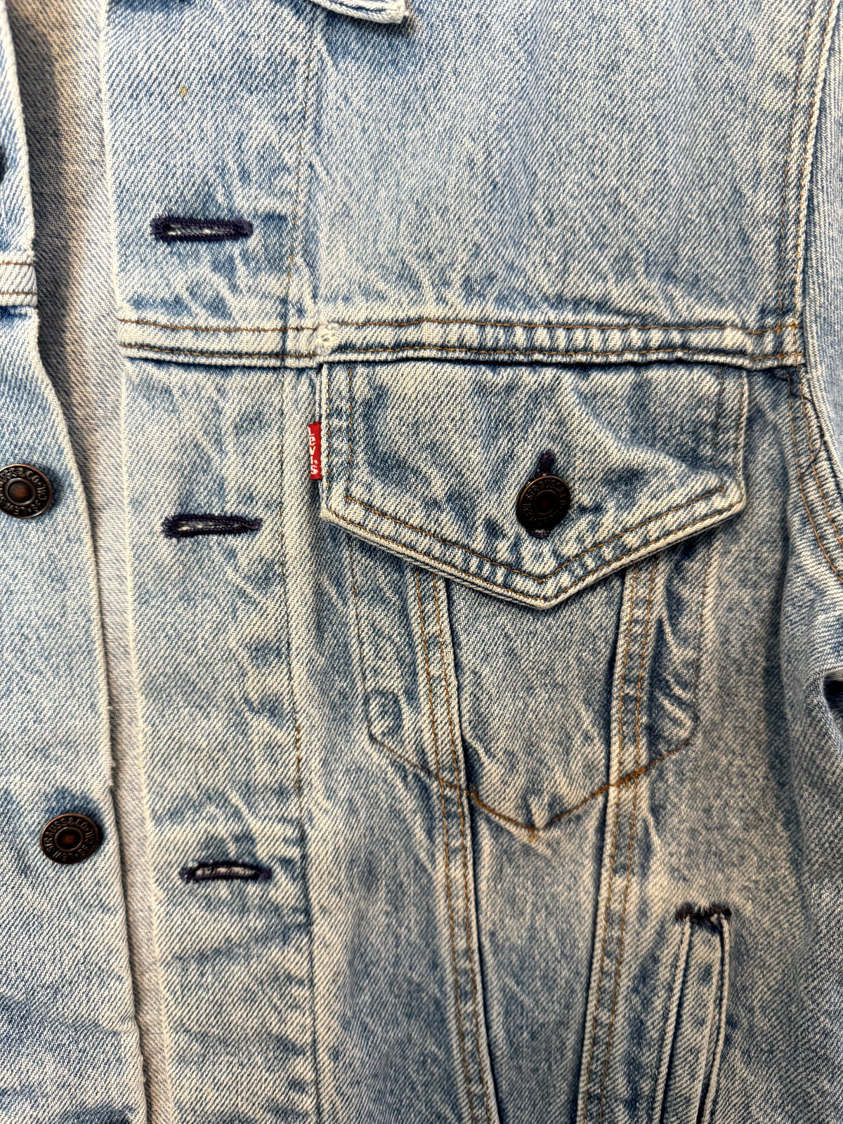 VINTAGE LEVIS Denim Trucker Jacket Light Wash Blue 80s 70506 Size 46R Large