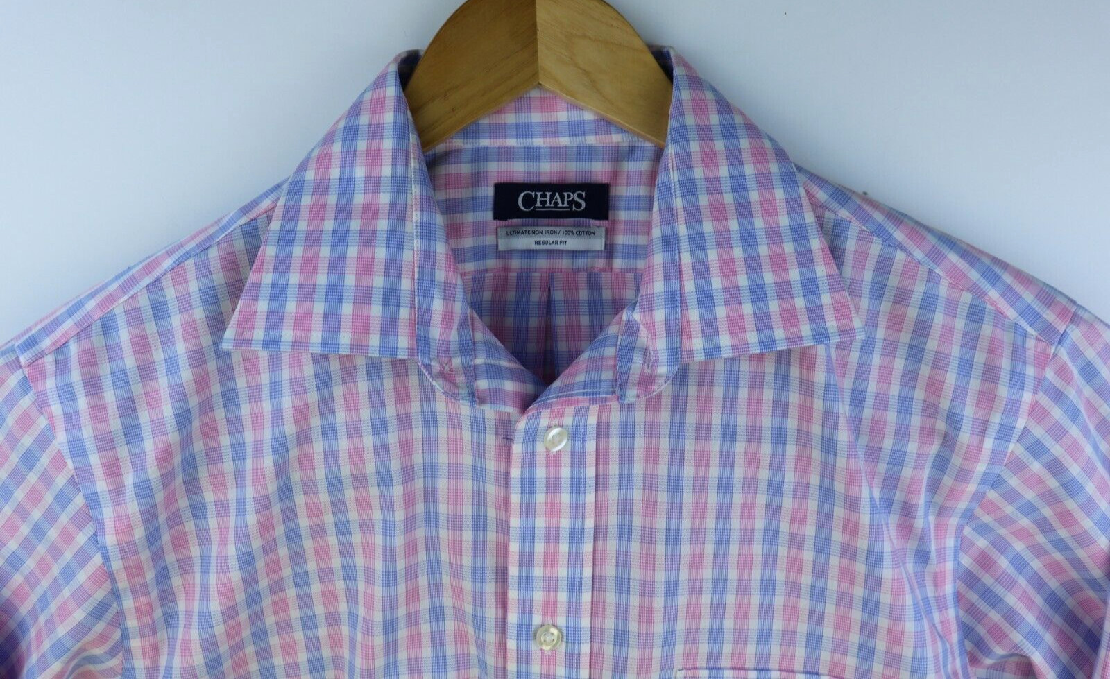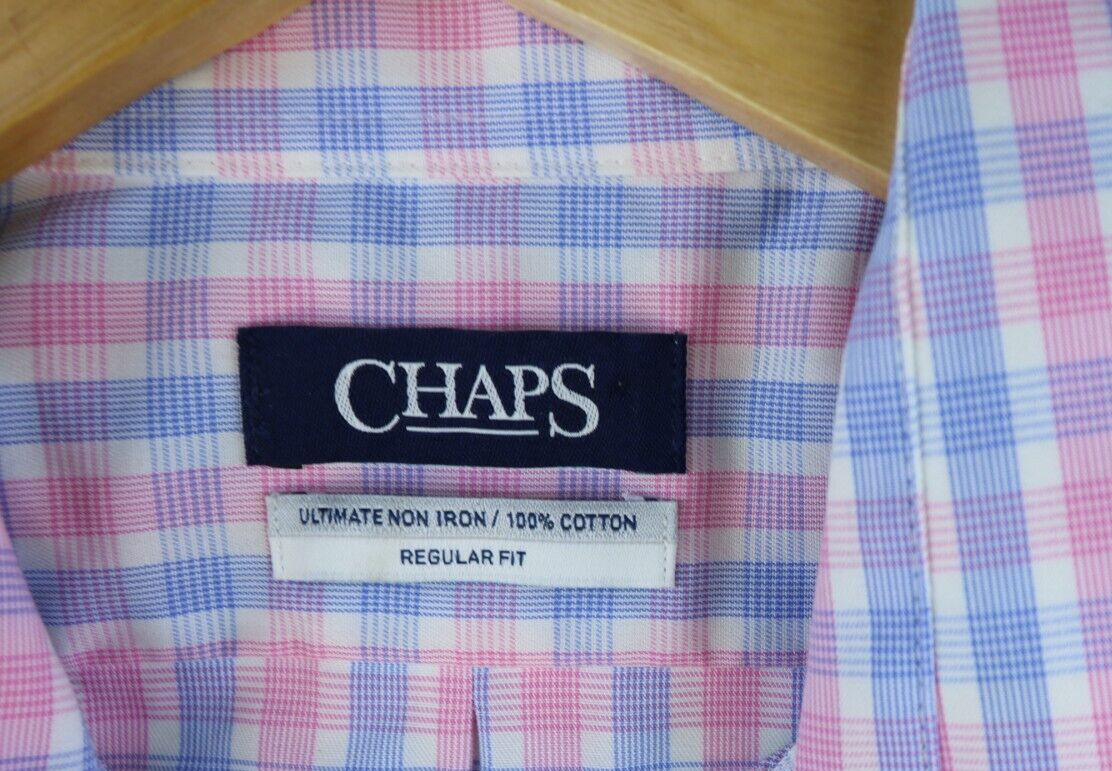как выглядит New Chaps Mens Regular Fit Wrinkle-Free Stretch Collar Dress Shirt Rose M 15 1/2 фото