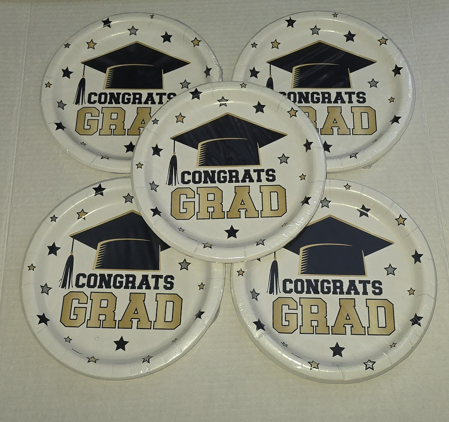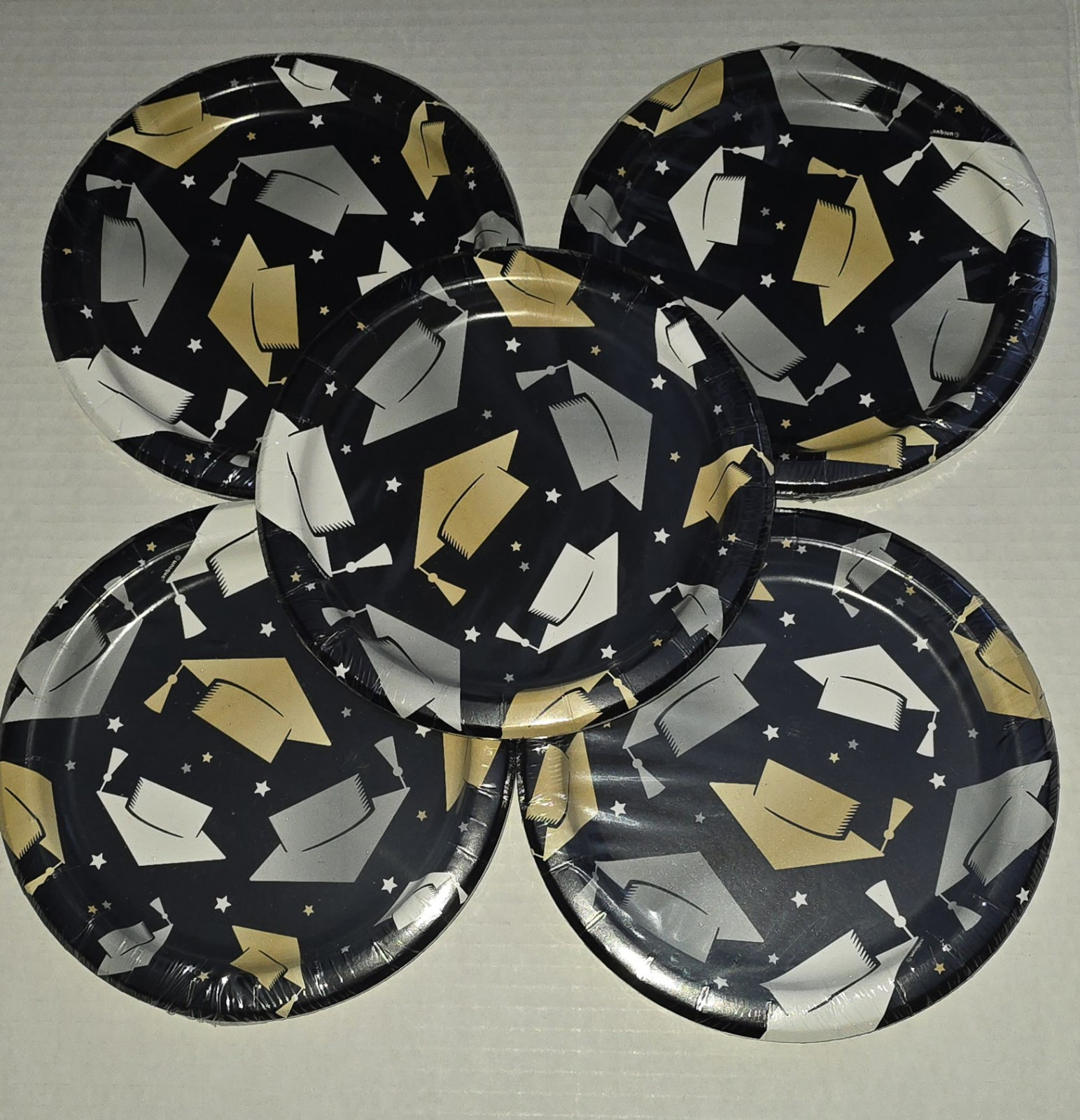 как выглядит NEW Black Gold Graduation Party Supplies Tableware For 40 Guests  600 Pcs фото