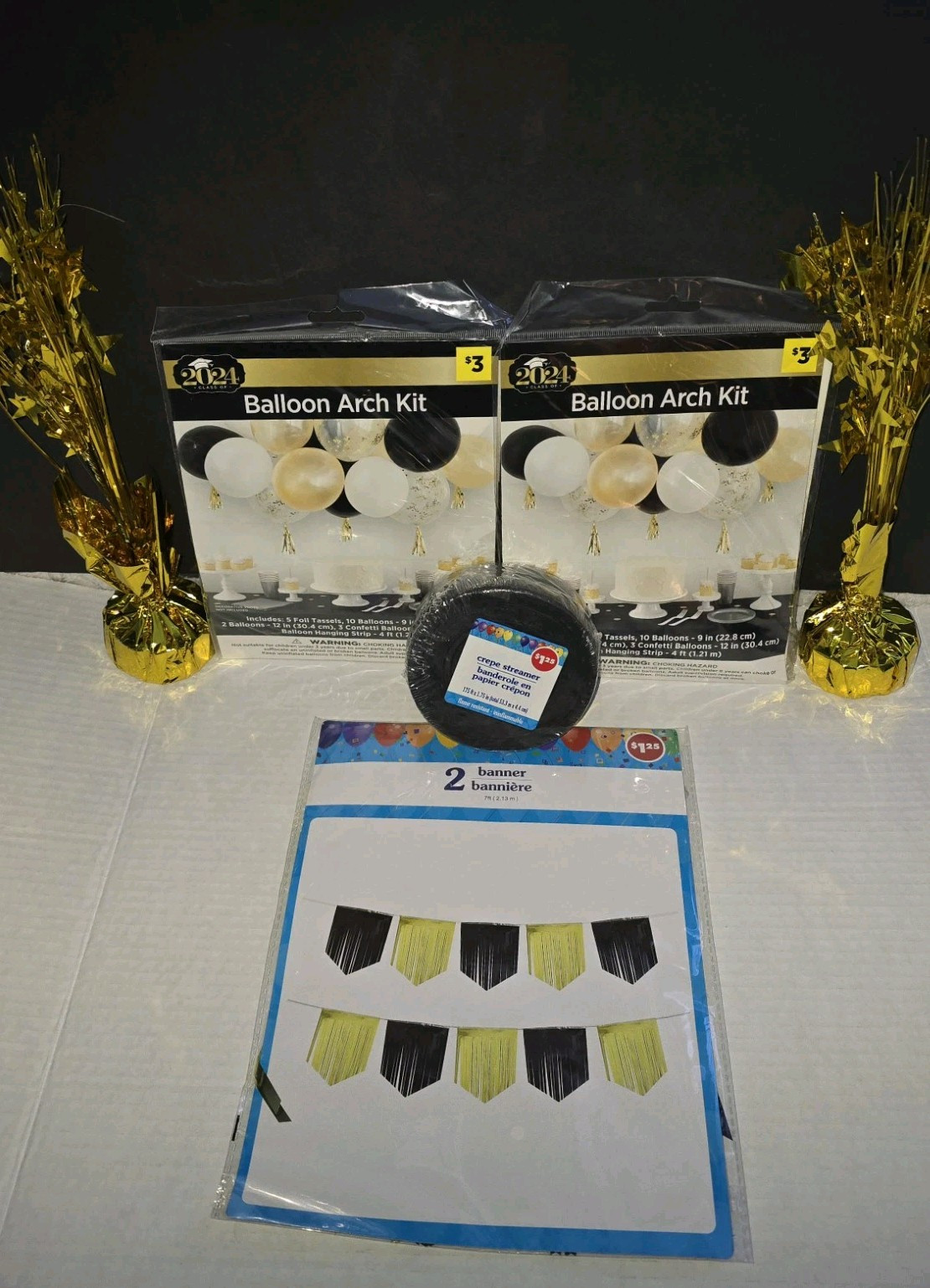 NEW Black Gold Graduation Party Supplies Tableware For 40 Guests 600 Pcs