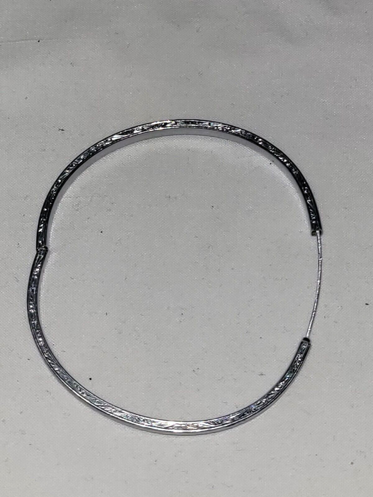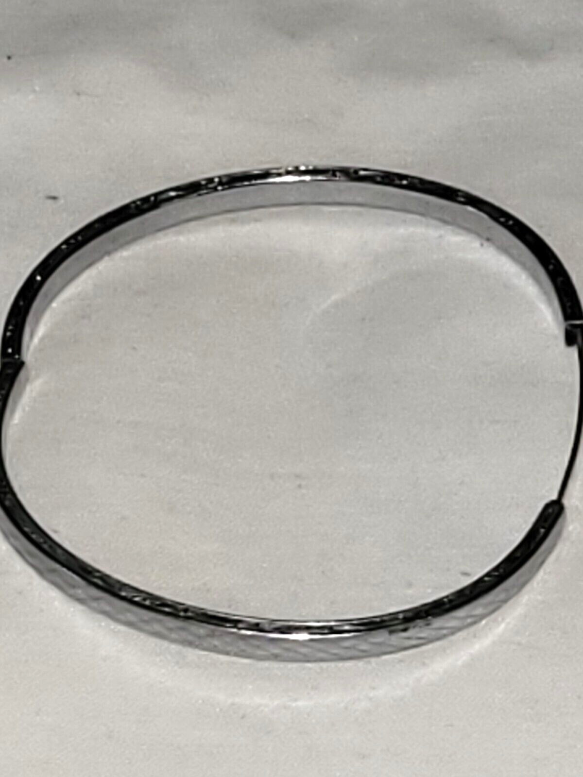 как выглядит Etched Hinged Silver Bracelet with Slide Bar L Mfg Co Signed WM фото