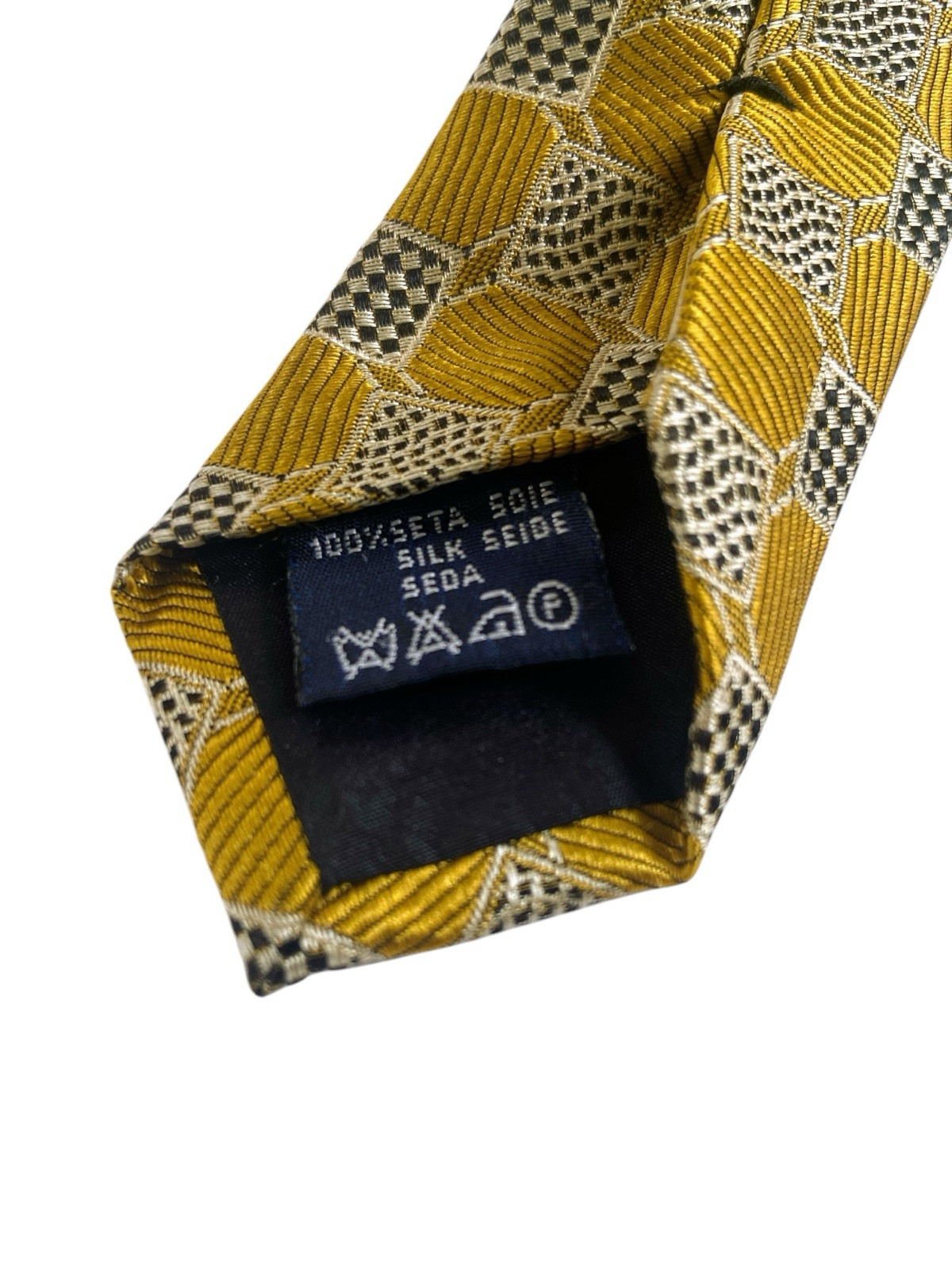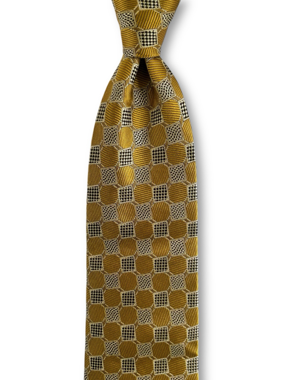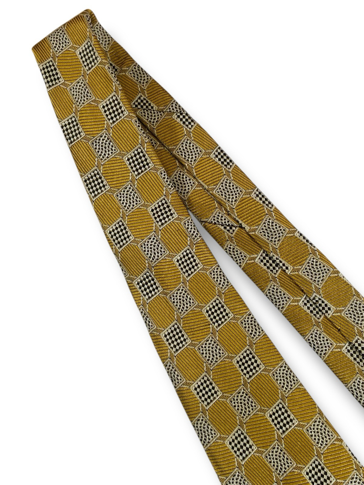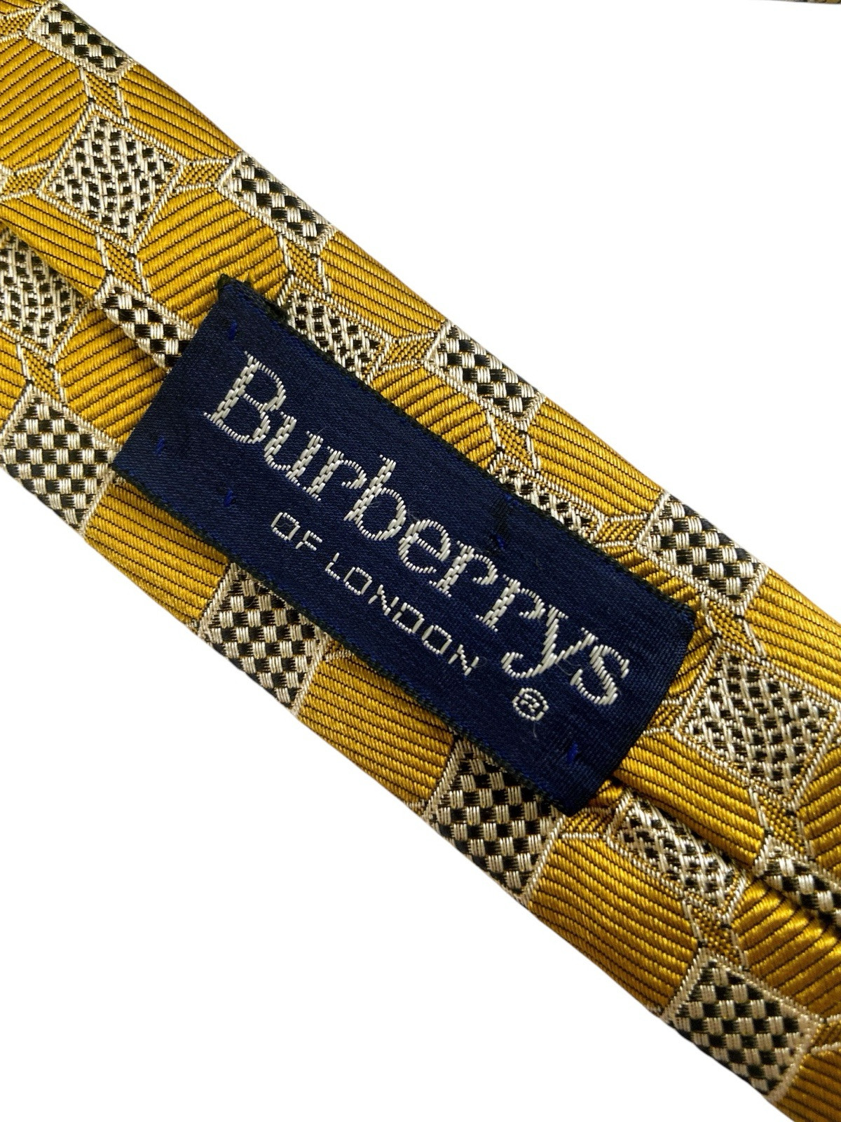 Burberrys London Vintage Silk Tie Metallic Gold Black Checkered Box Logo Italy