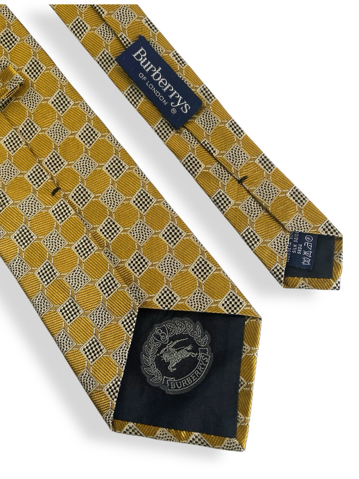 как выглядит Burberrys London Vintage Silk Tie Metallic Gold Black Checkered Box Logo Italy фото