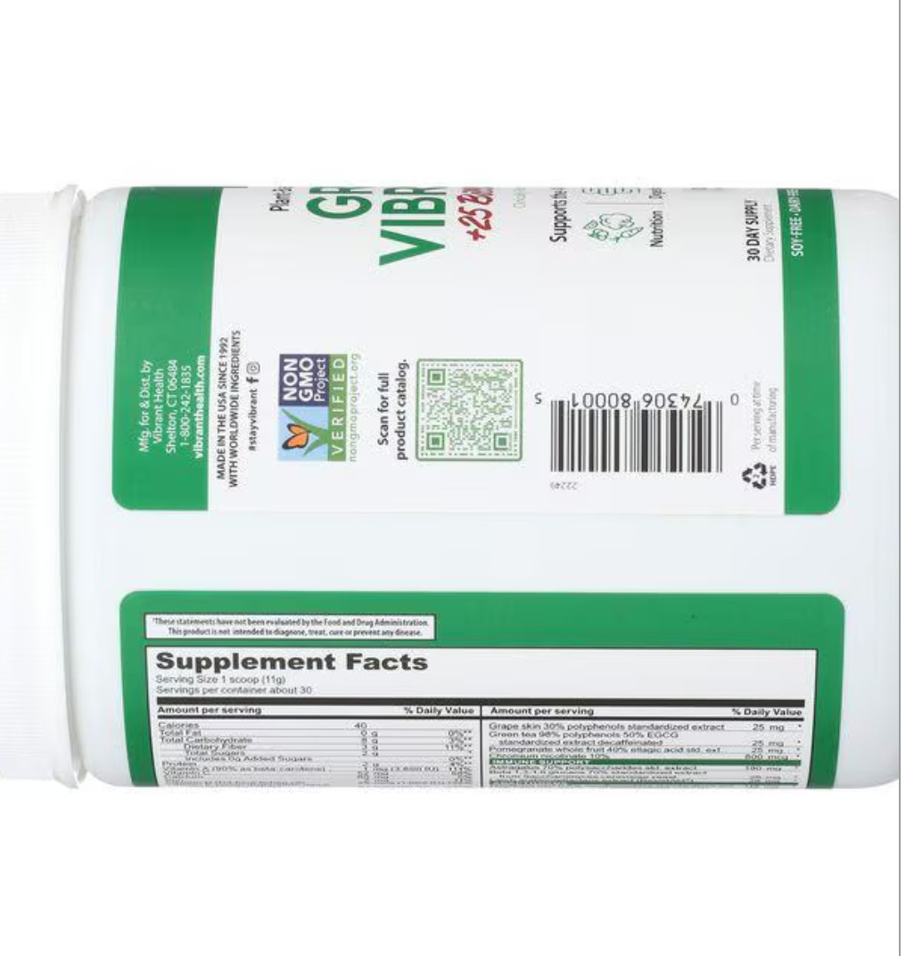Vibrant Health Green Vibrance Powder 330grams 11.64oz 30 day Version 21.0