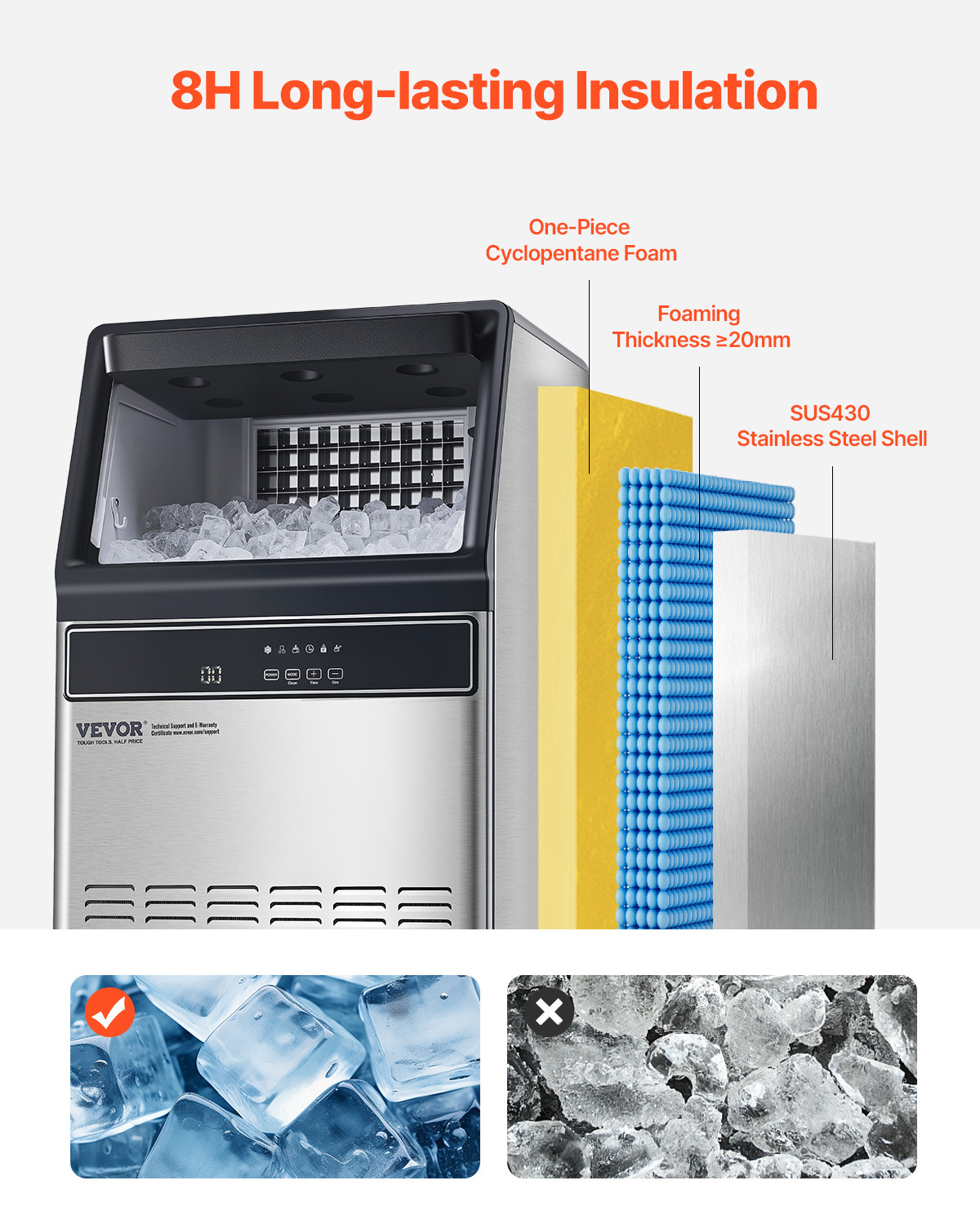 VEVOR Commercial Ice Maker Freestanding Cabinet Machine 160lbs/24H 55 Ice Cubes