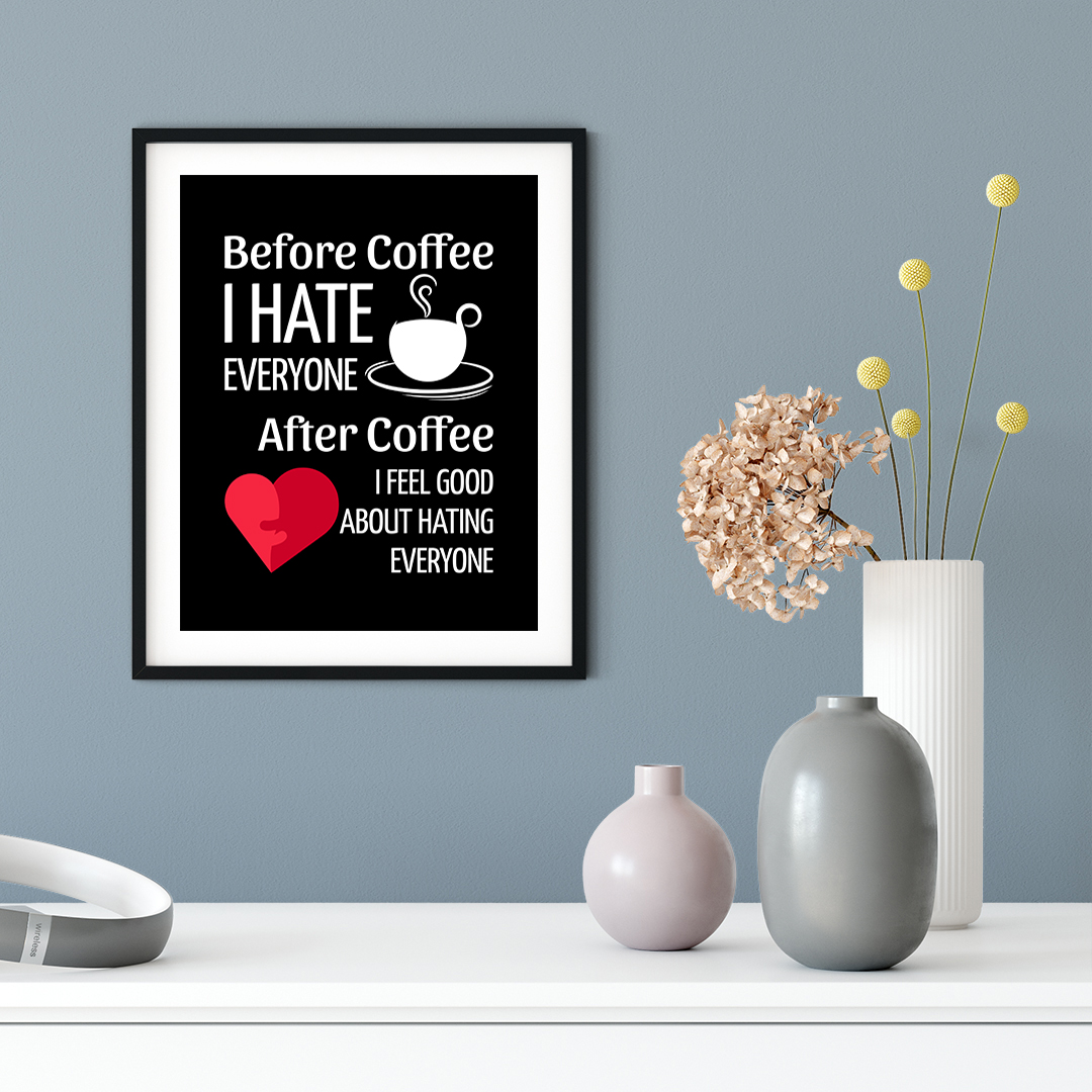как выглядит Before Coffee I Hate Everyone After Coffee I Feel Good About Hating Wall Print фото